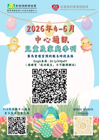 香港遊樂場協會 - 賽馬會瓊富/慈雲山 2026年4-6月中心通訊(兒童及家庭)