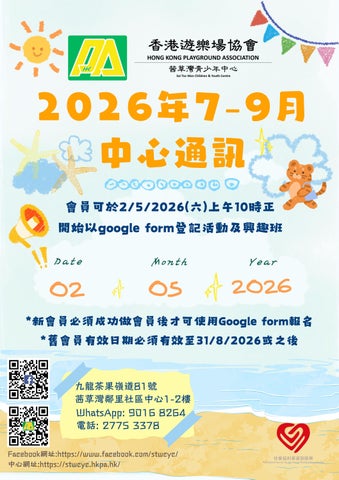 香港遊樂場協會 賽馬會竹園(南)青少年綜合服務中心 2026年7-9月中心通訊