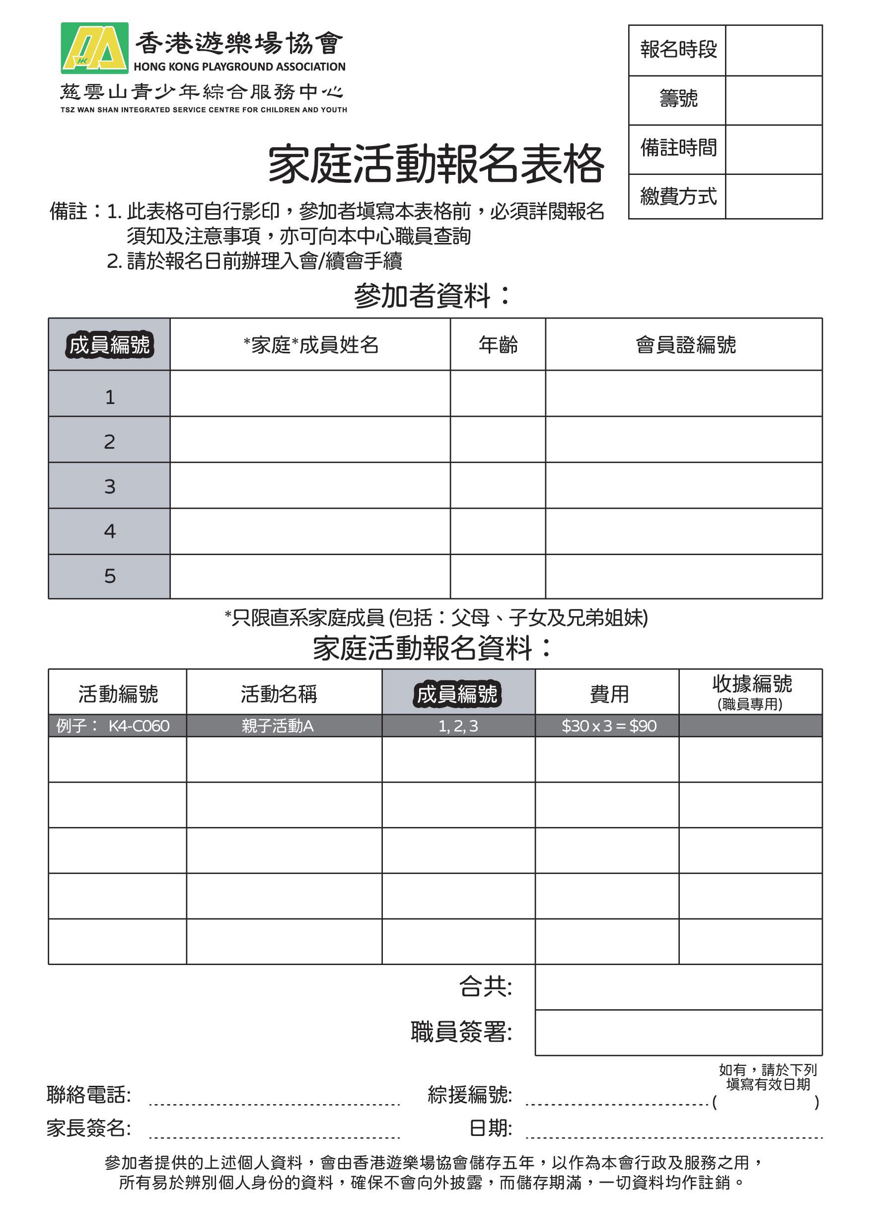 地點: 慈雲山青少年綜合服務中心 對象: 親子(6–24歲會員及其家長) 名額: 6人(3對親子)