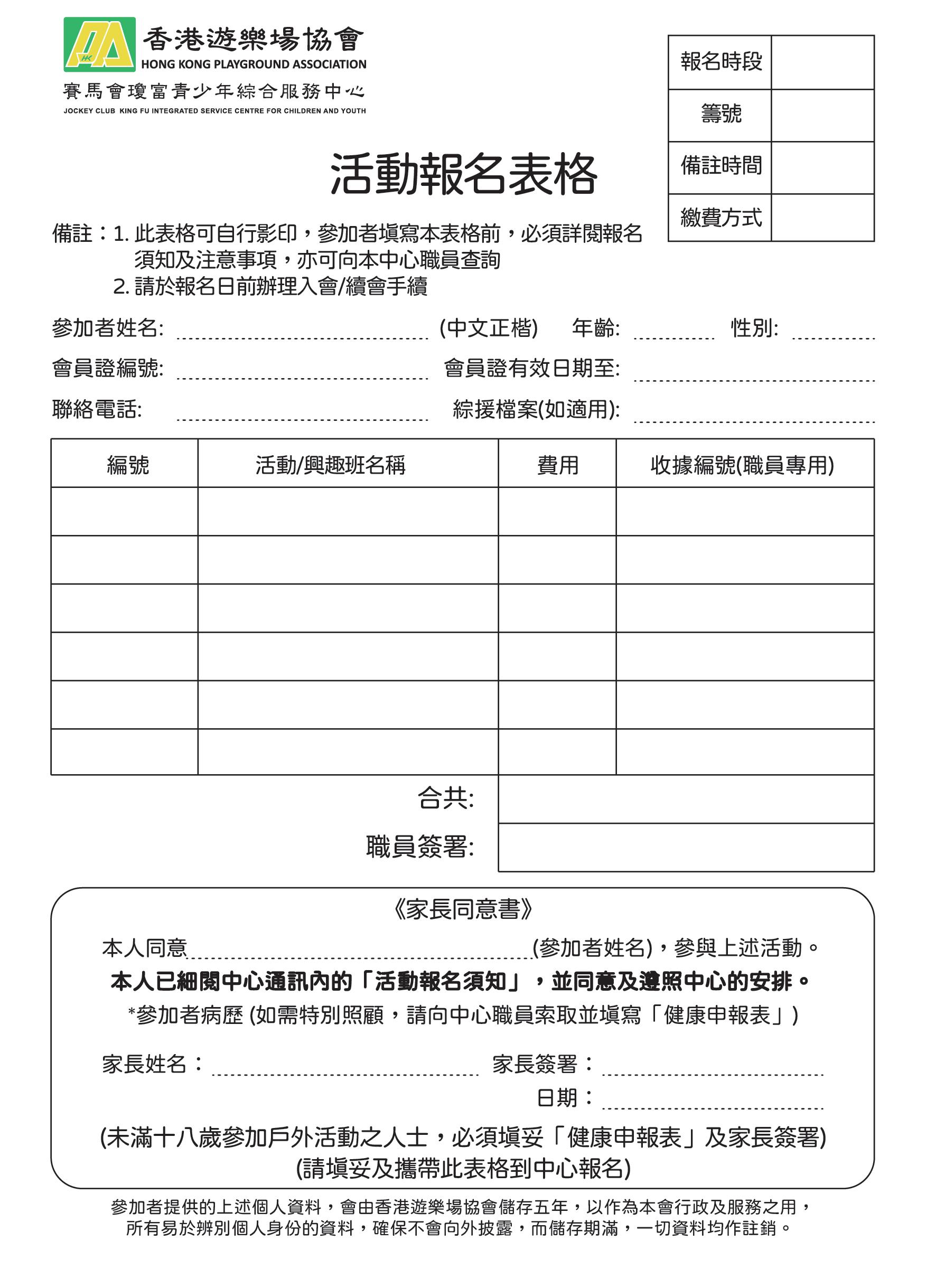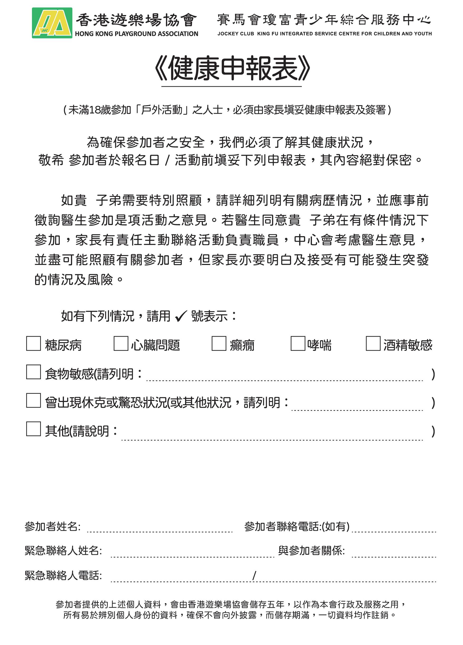 5. 因當天有集體遊戲,請於當天穿著運動 鞋及帶備足夠的水
