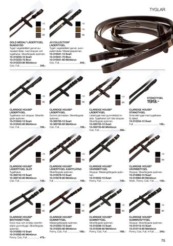 CLARIDGE HOUSE® GUMMITYGEL Mässingsfärgade spännen. 10-310353-10 Svart 10-310353-80 Mörkbrun Ponny, Cob, Full ������������������ 189,-