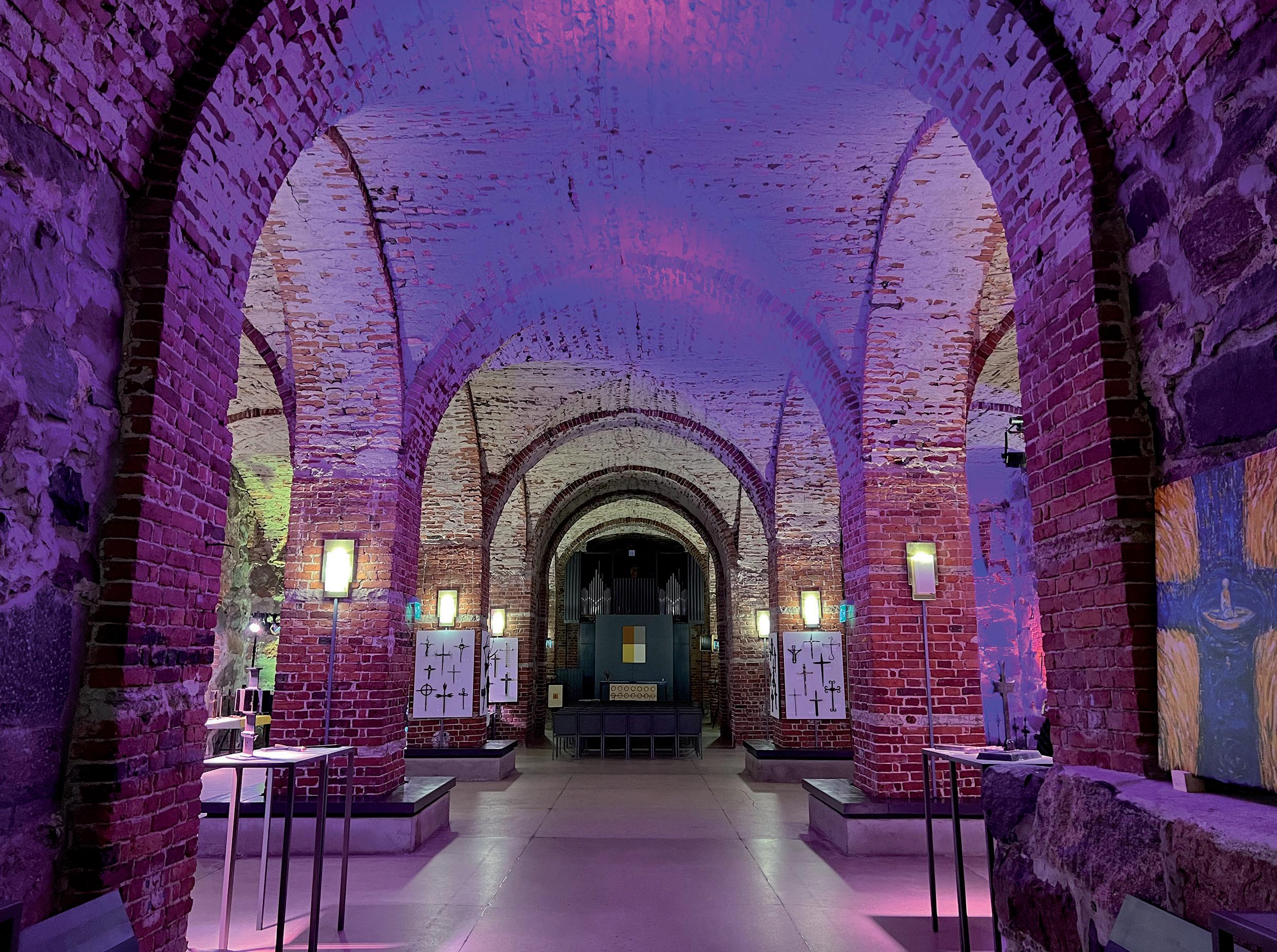 Helsingin tuomiokirkon krypta antoi hienot puitteet näyttelylle.