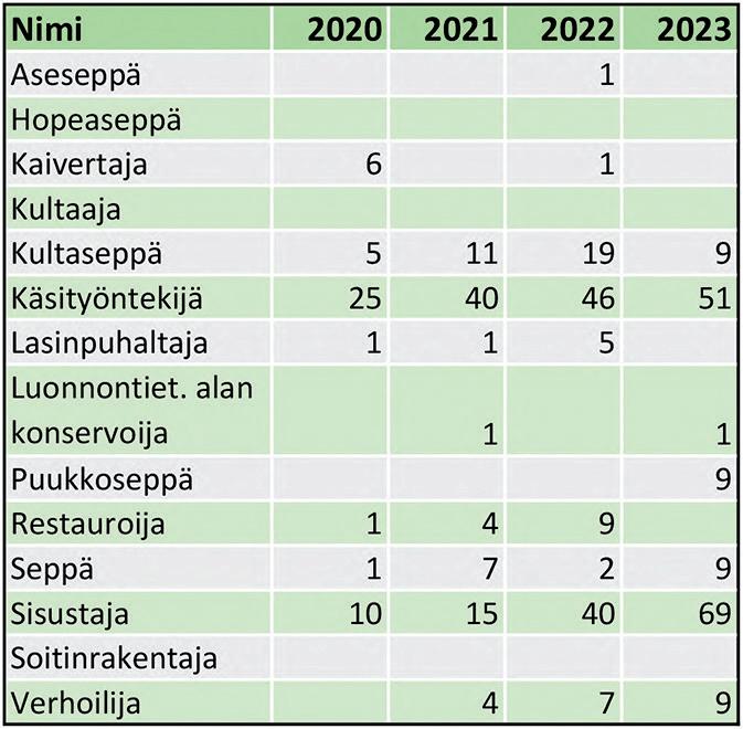 Taulukossa suoritettujen ammattitutkintojen määrä tutkintonimikkeittäin.