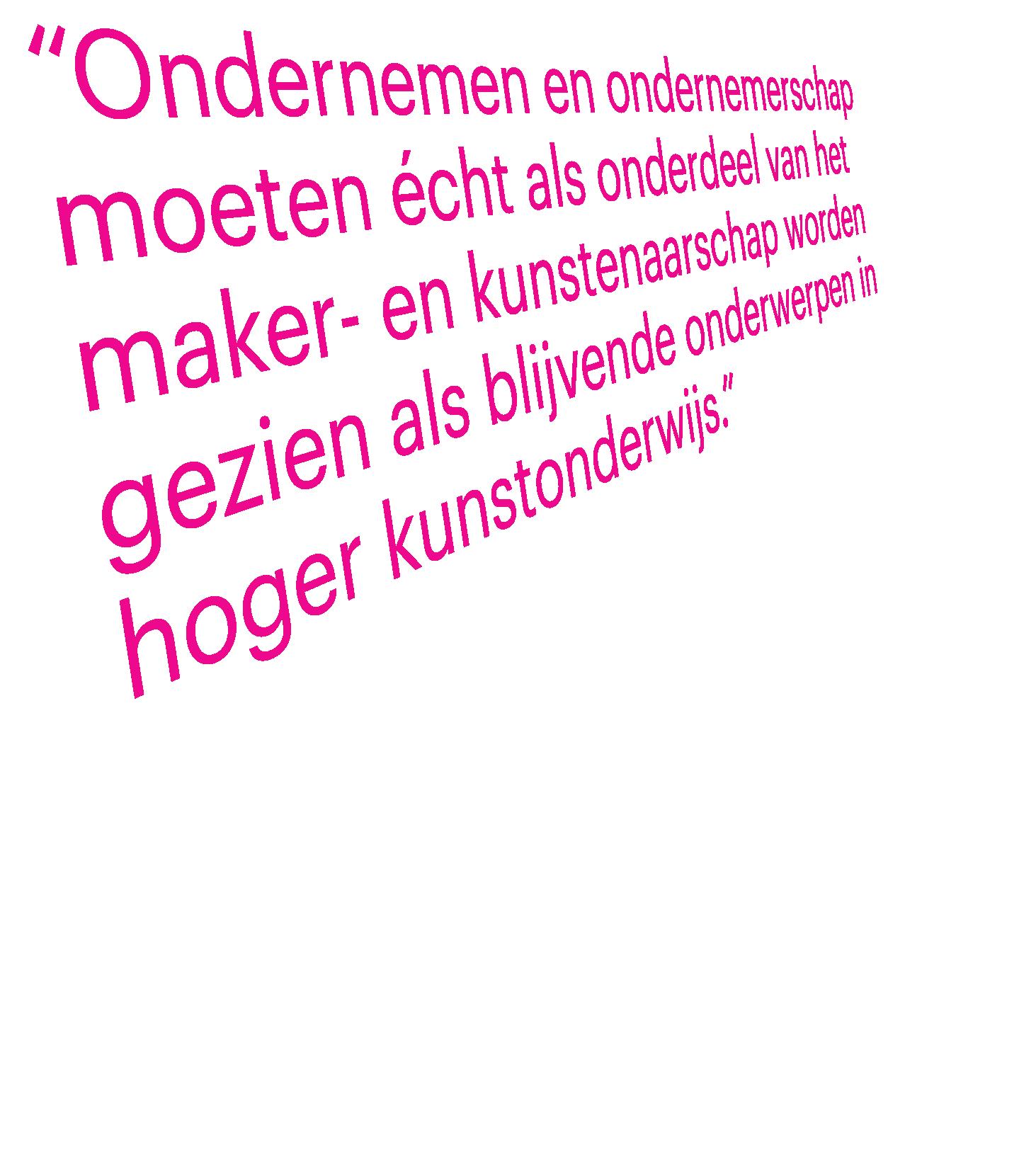 • Zijn al onze studenten creatief ondernemer. Of ze nu werken als zelfstandige of in loondienst: ze hebben de vaardigheden en het reflectief vermogen om zich te blijven ontwikkelen.