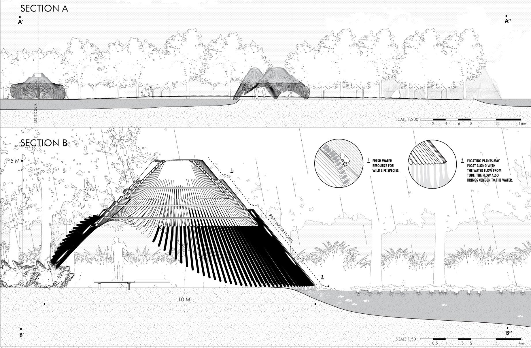 Koi Fish LOTUS POND LOTUS POND 12.5 25 50 100 m 0 Scale 1:200 @A3 N A A’ B B’ DESIGN PROPOSAL SECTION B-B’ Bird House After Several Years Bird Nest Natural Bamboo to Collect Rain as Water Source Place for Birds to Rest The