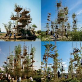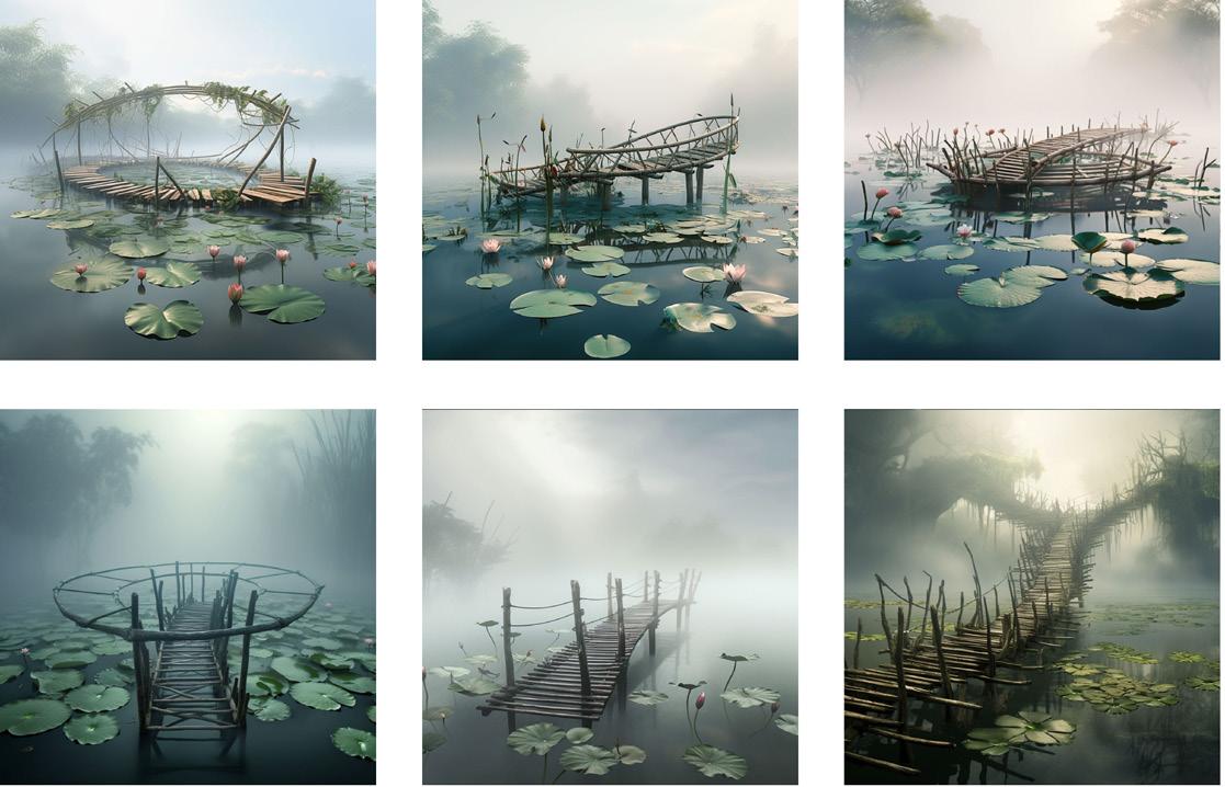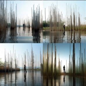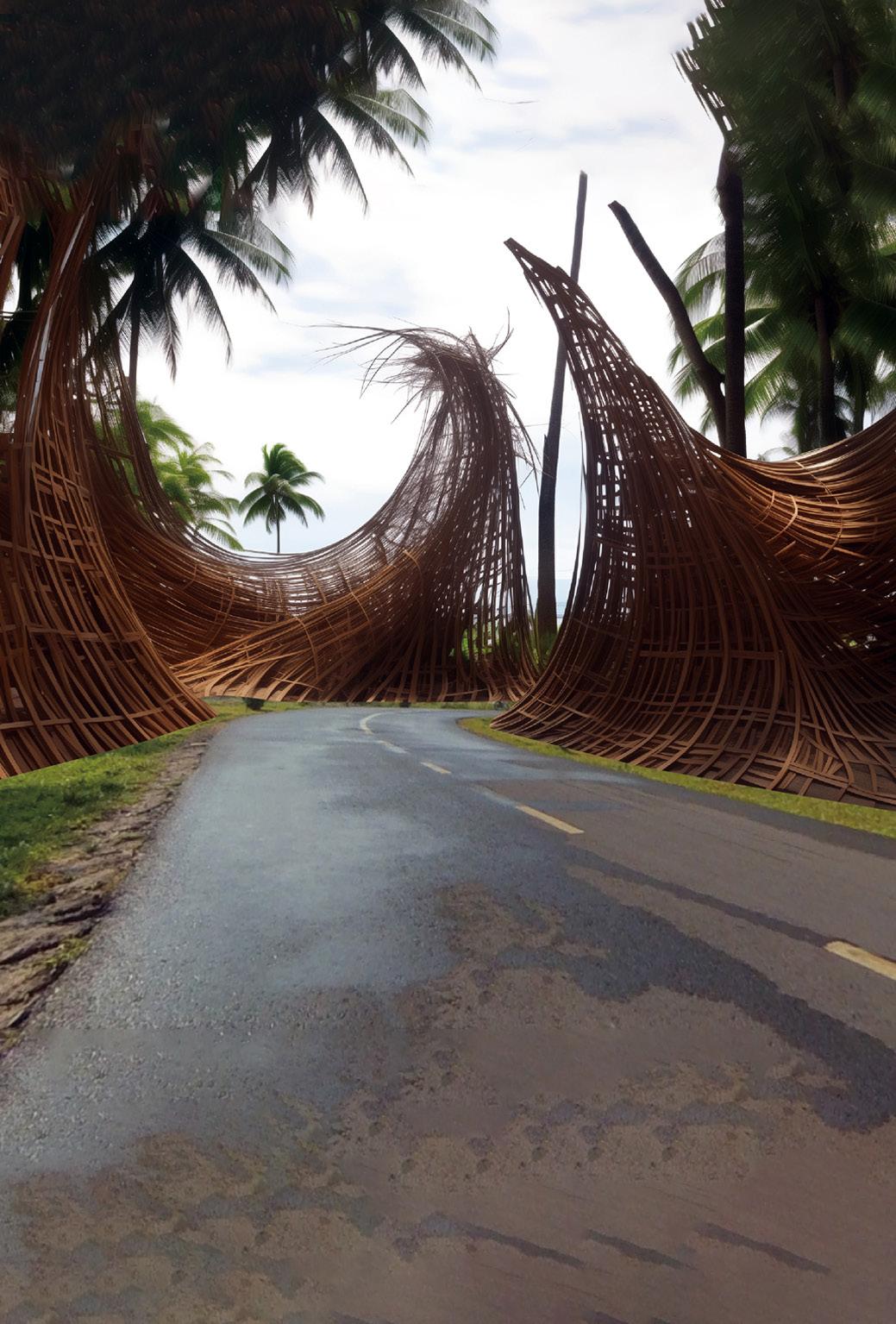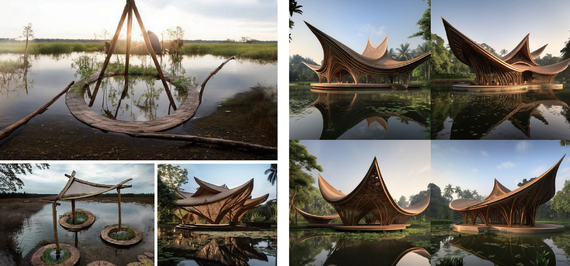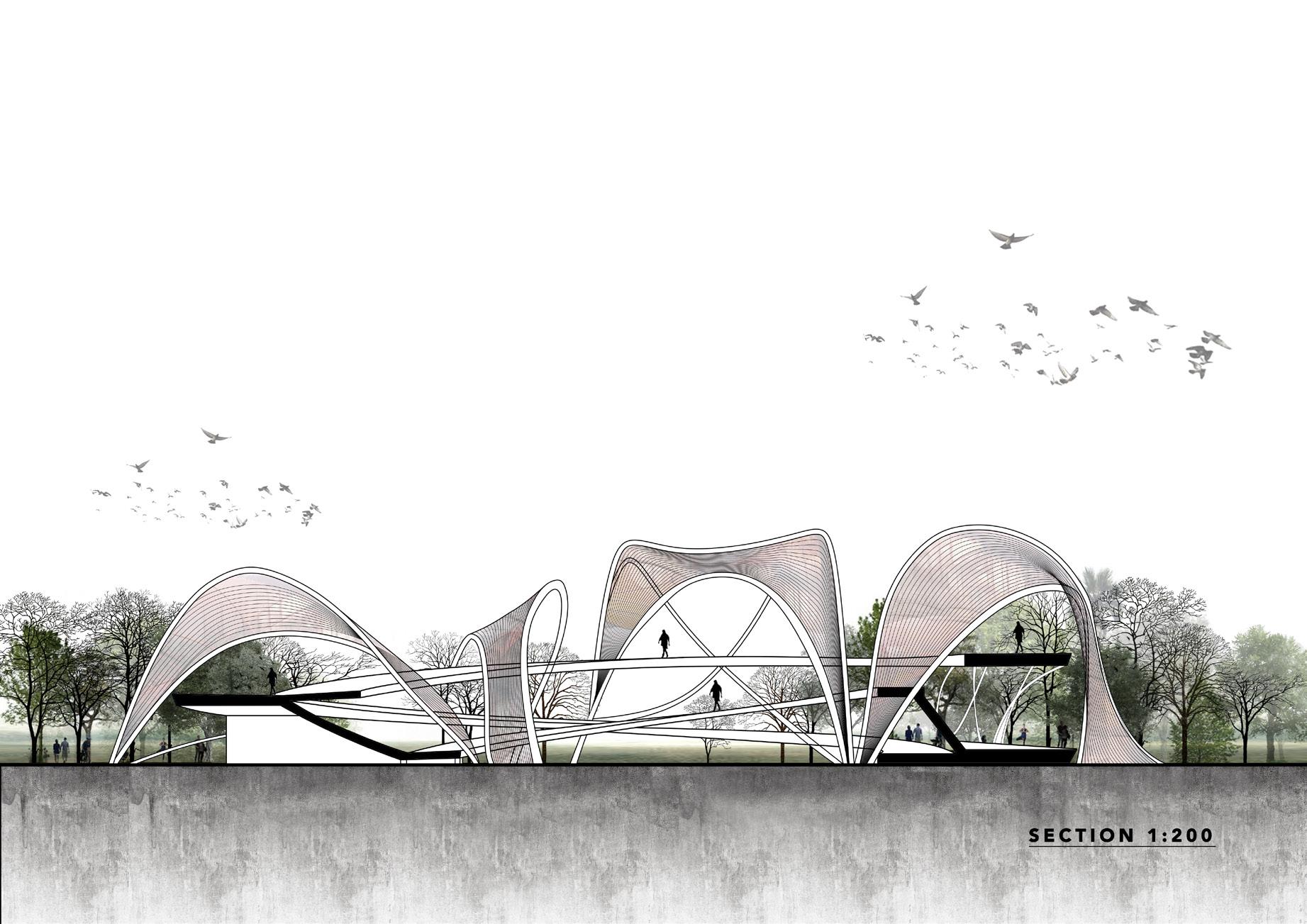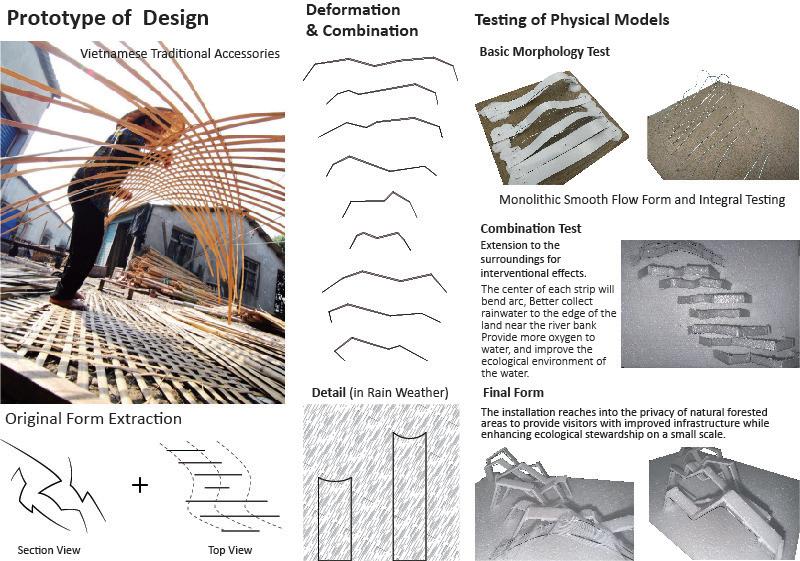 The bamboo bridge we are designing takes inspiration from the traditional "Monkey Bridge" found in the Mekong Delta region of Vietnam. It serves the dual purpose of allowing people to access a lotus pond and providing di erent levels for maintenance and observation.
