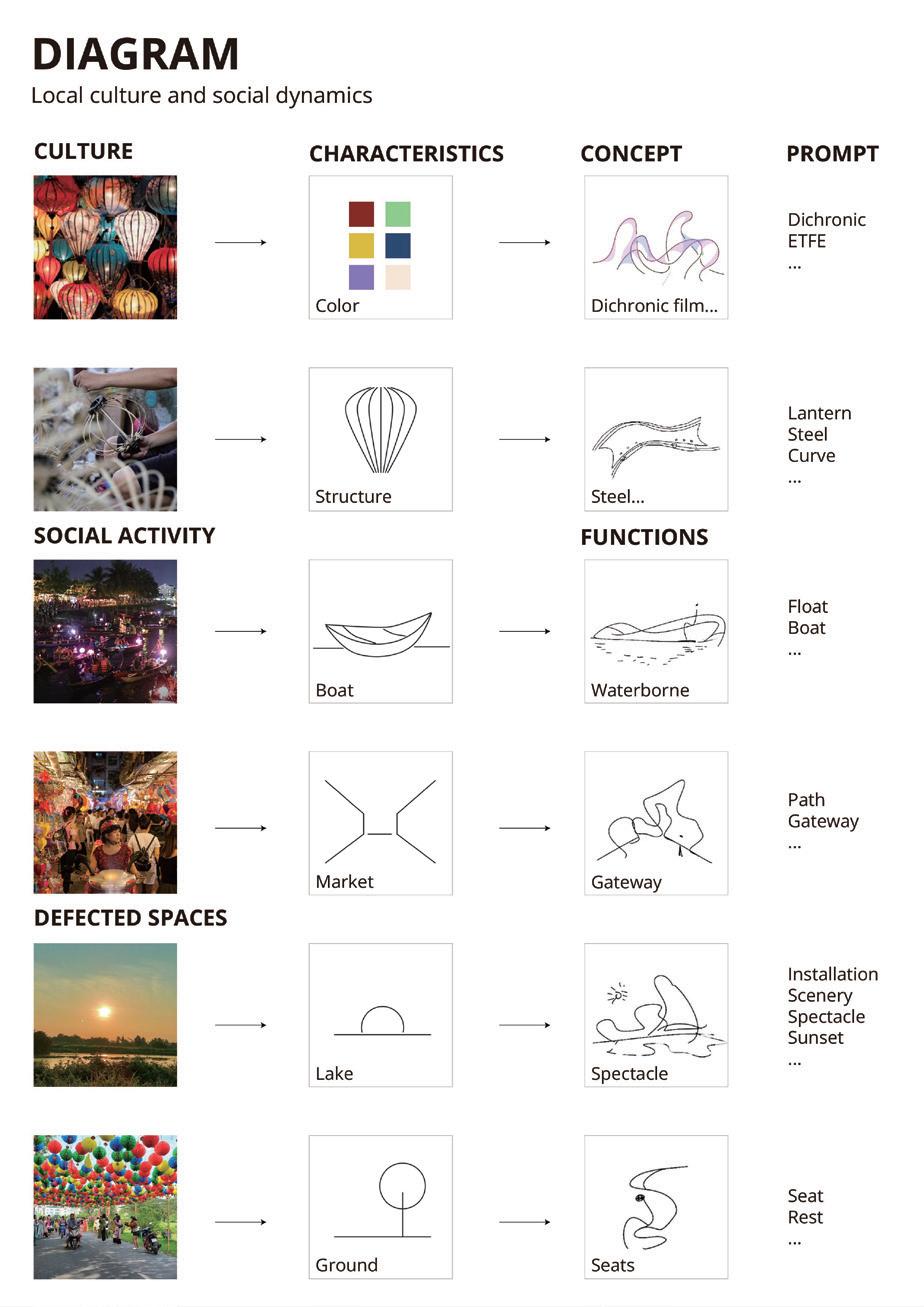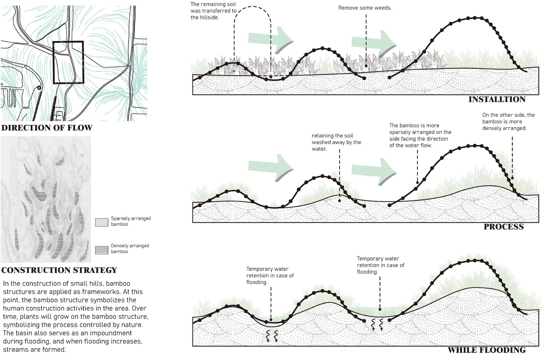 bamboo bridge considers the habitat of the birds inside Go Vap Cultural Park, such as sparrows and warblers. Reference to the bamboo bridge design in Mekong Delta, the design extends the length of bamboo and attach simple construction method for providing water resources and nests for the birds.