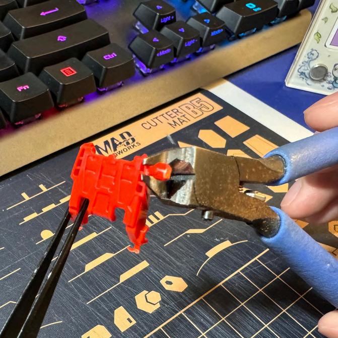 I want to start with a quick disclaimer: DO NOT DO THIS! THIS IS A BAD IDEA! This is how pieces go missing, and it might cause confusion while you ’ re assembling the kit. Unless you have an organising tray or bag ready, I do not recommend cutting out all the pieces from the runner first.