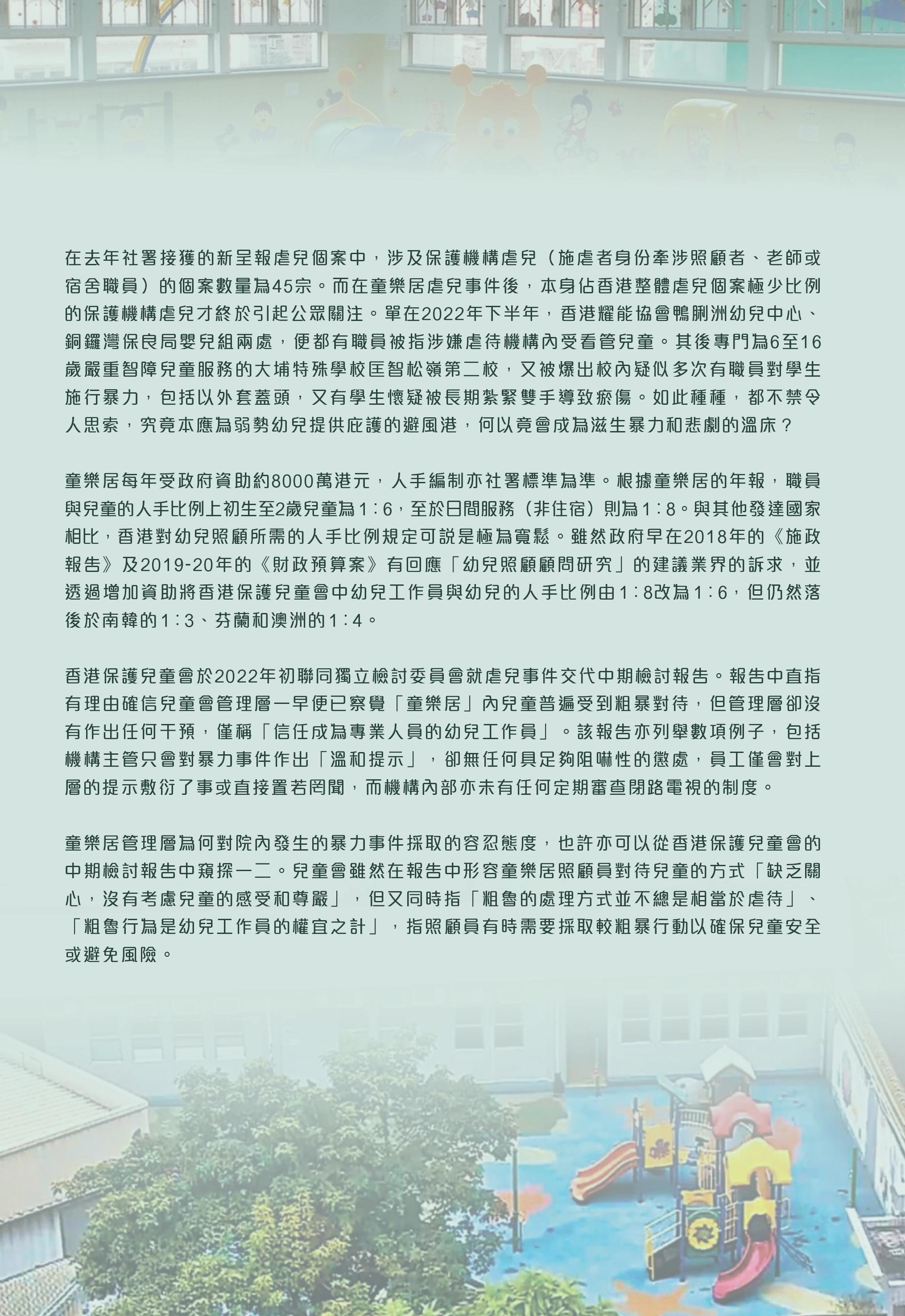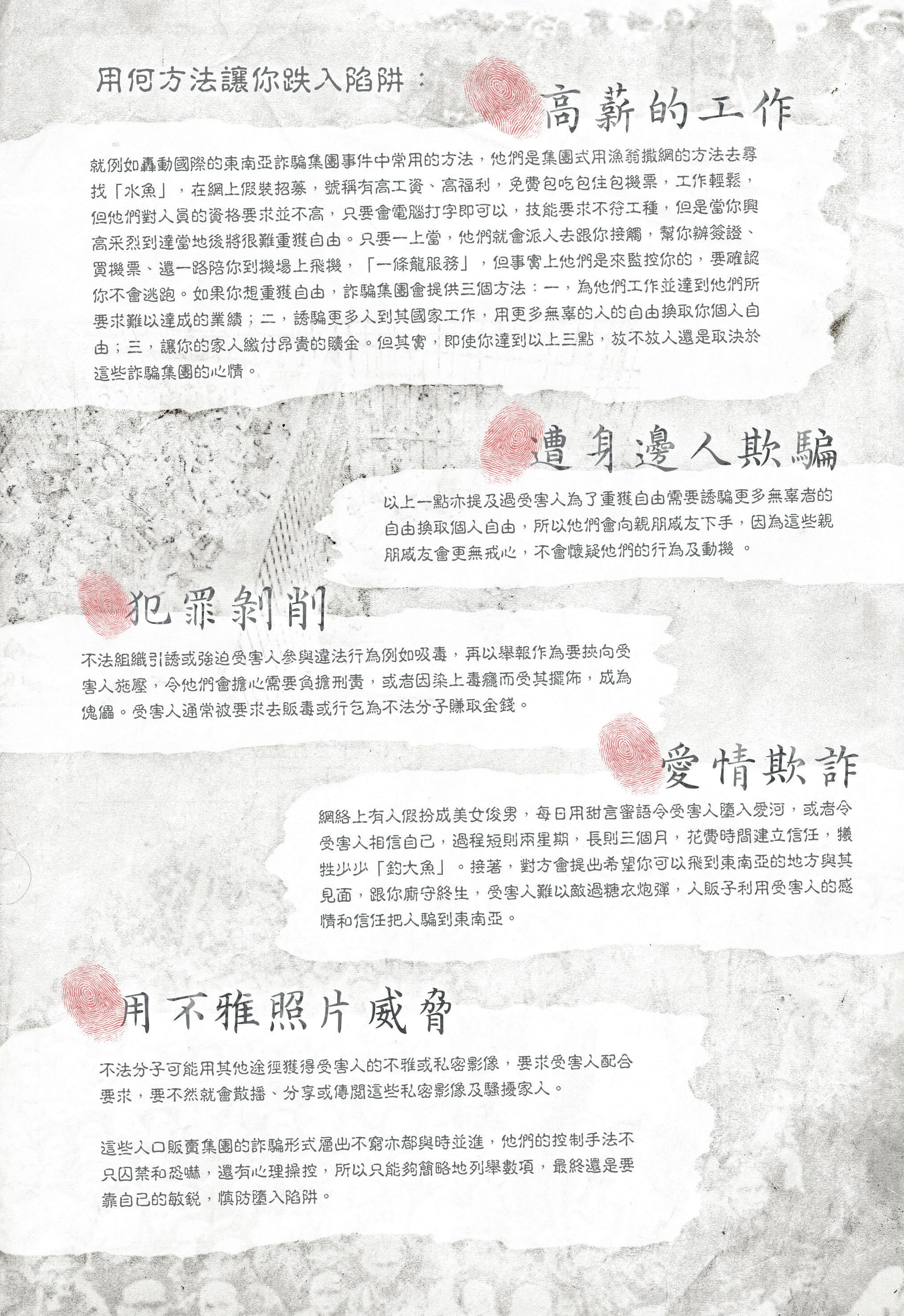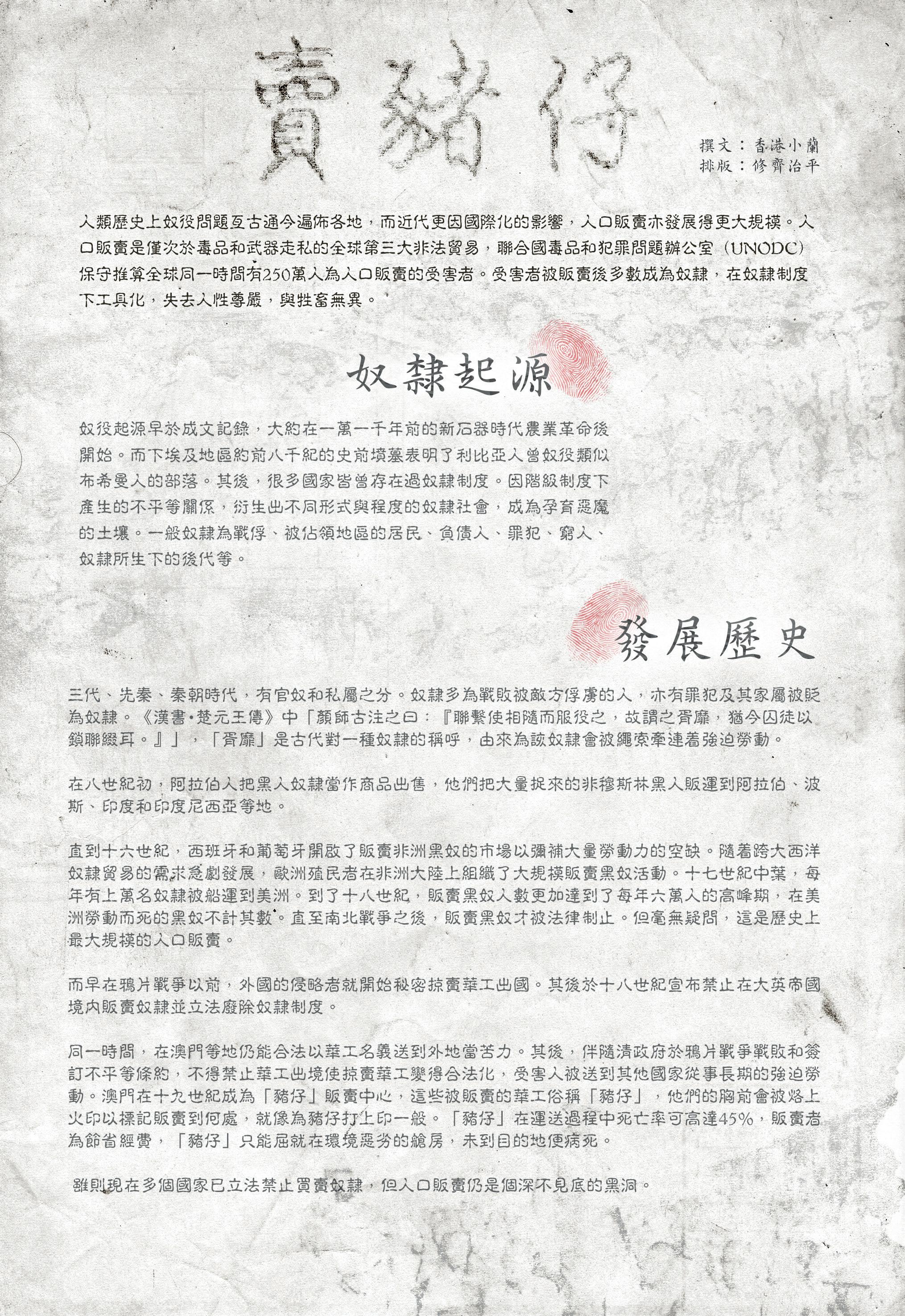他要求我們每天準時為他工作,全年無休;得到的一分一毫亦要全數上繳於 他。他更會向我們進行暗示,試圖合理化他的所作所為,滿口胡柴。不得不 說,綁匪的馴養手法實在高明,壓榨的同時更會適時地施捨一些小恩小惠,籠 絡人心。