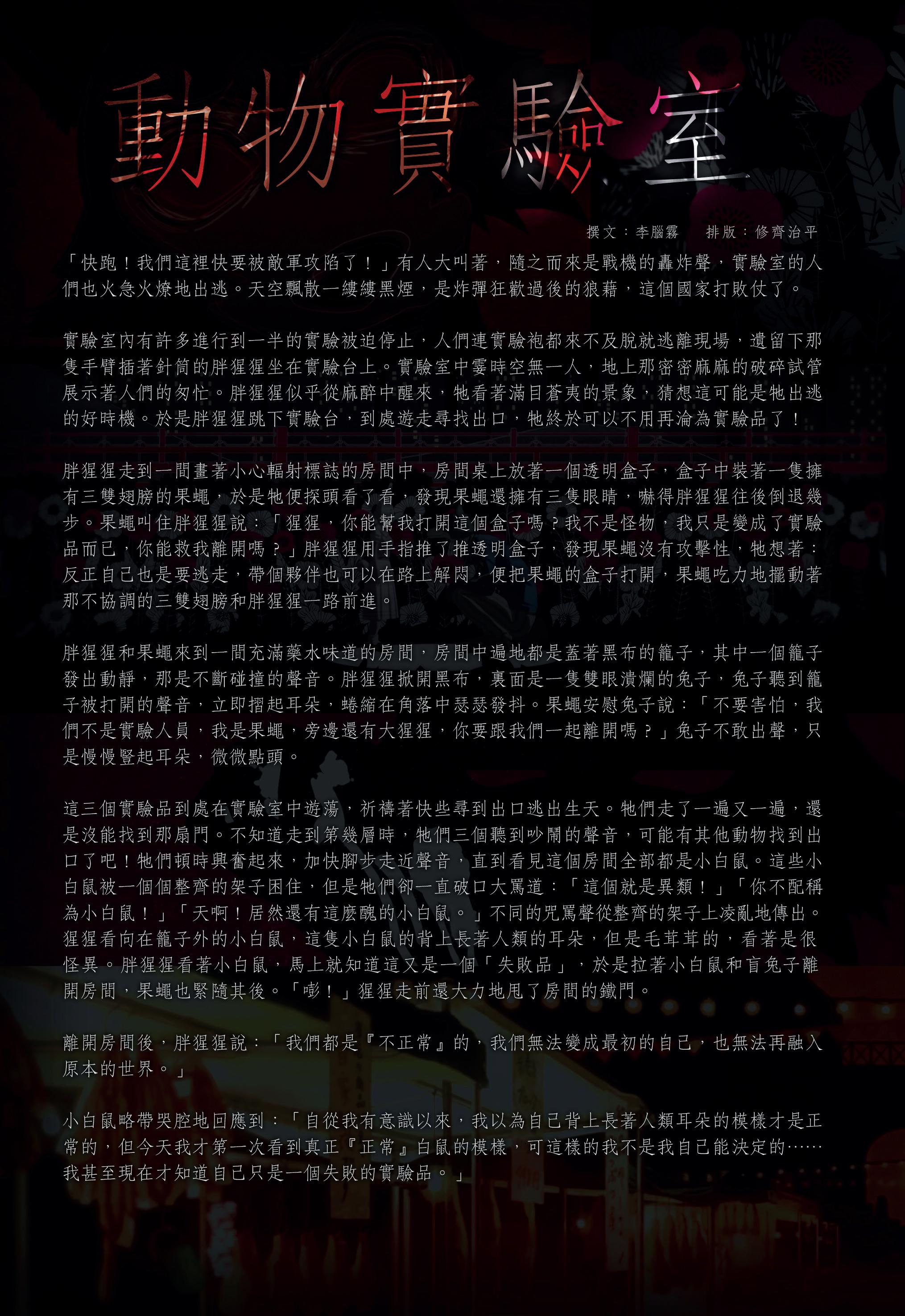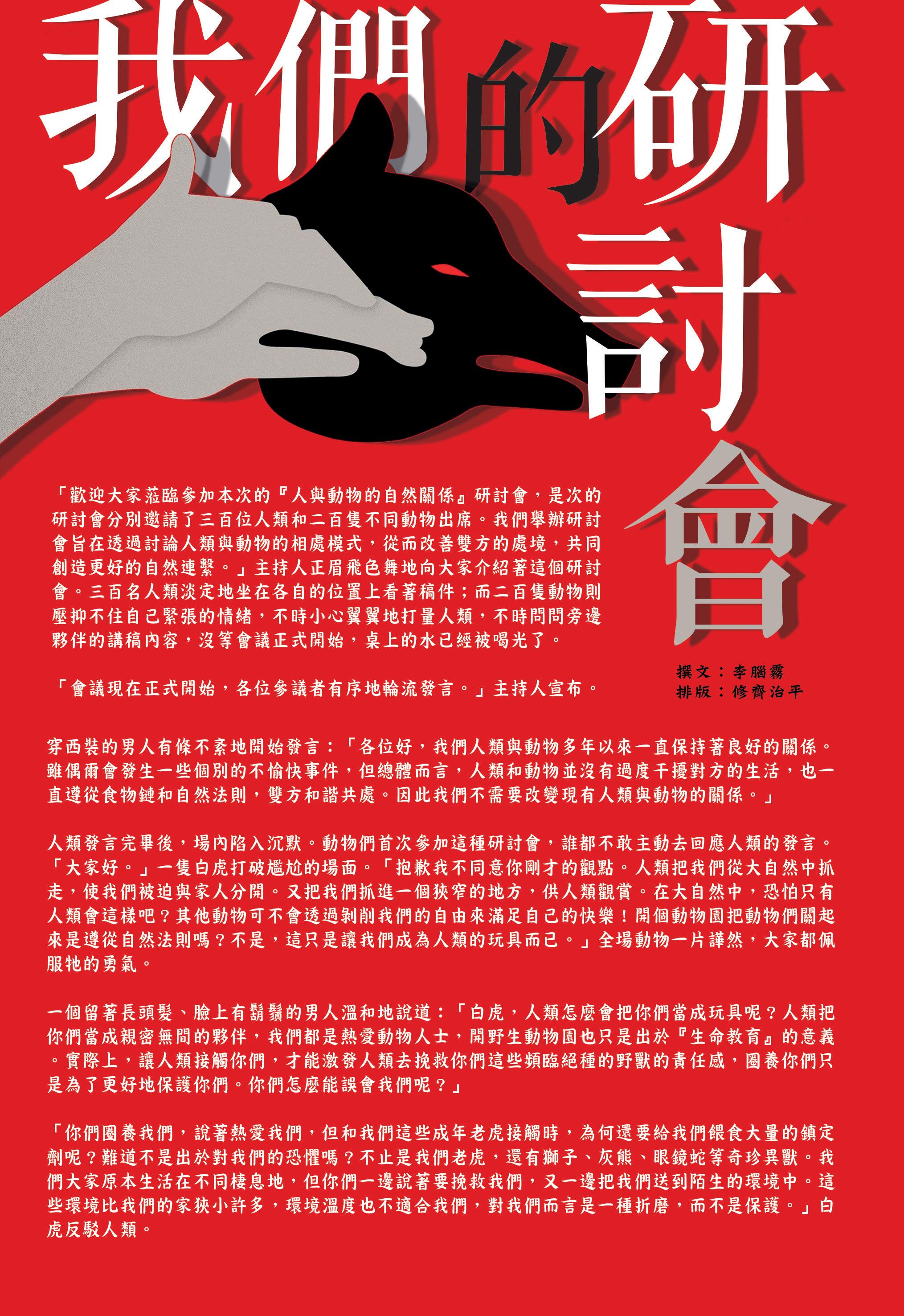 不難想像,我們都從科大編委裡找到文字的另一種面向。文字不再是應付考 試的八股文,而是一種比刀劍更強、足以為抗爭所用的武器。文字的力量賦 予我們審視他人的權力,帶來一種全新的生活態度,讓人不得已感到驕傲。