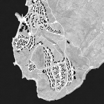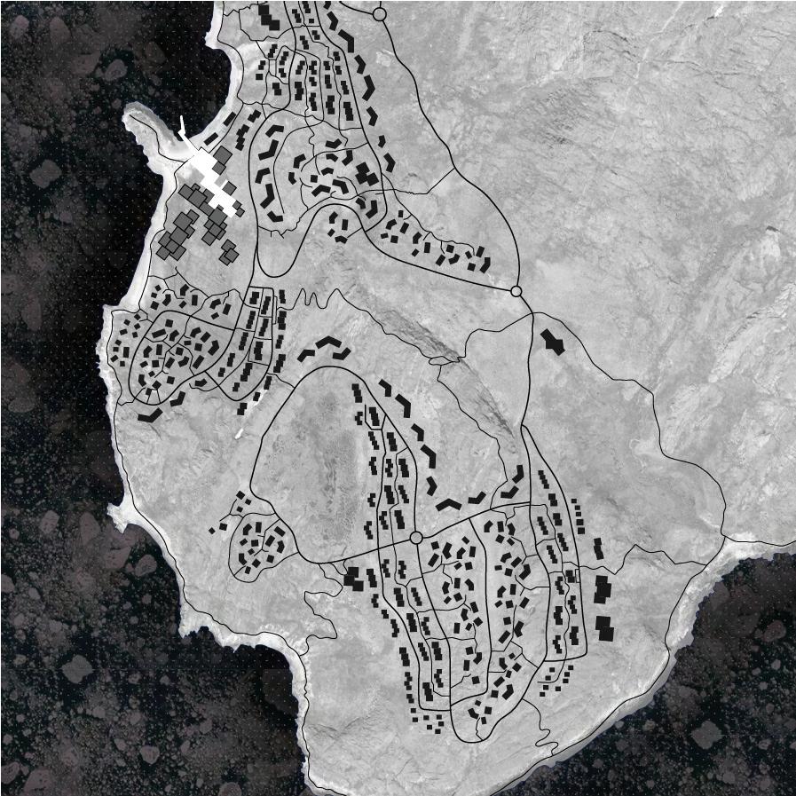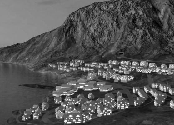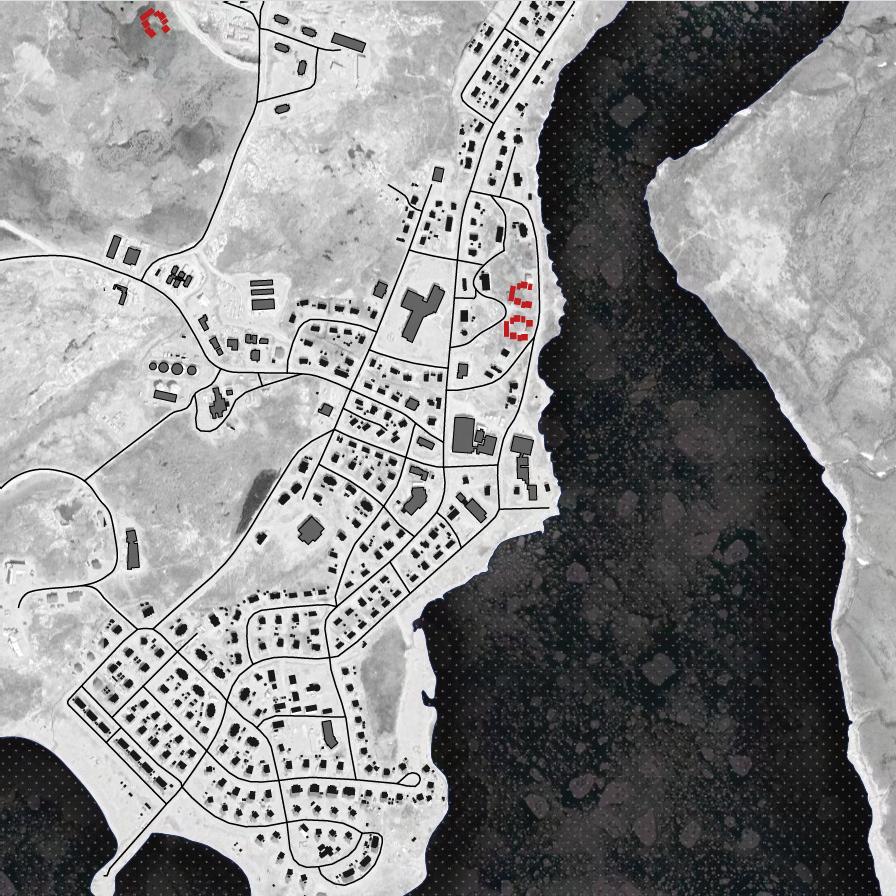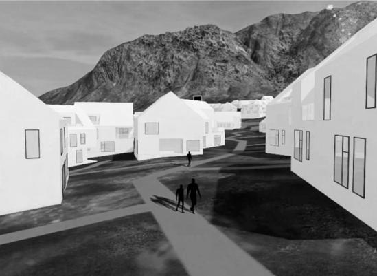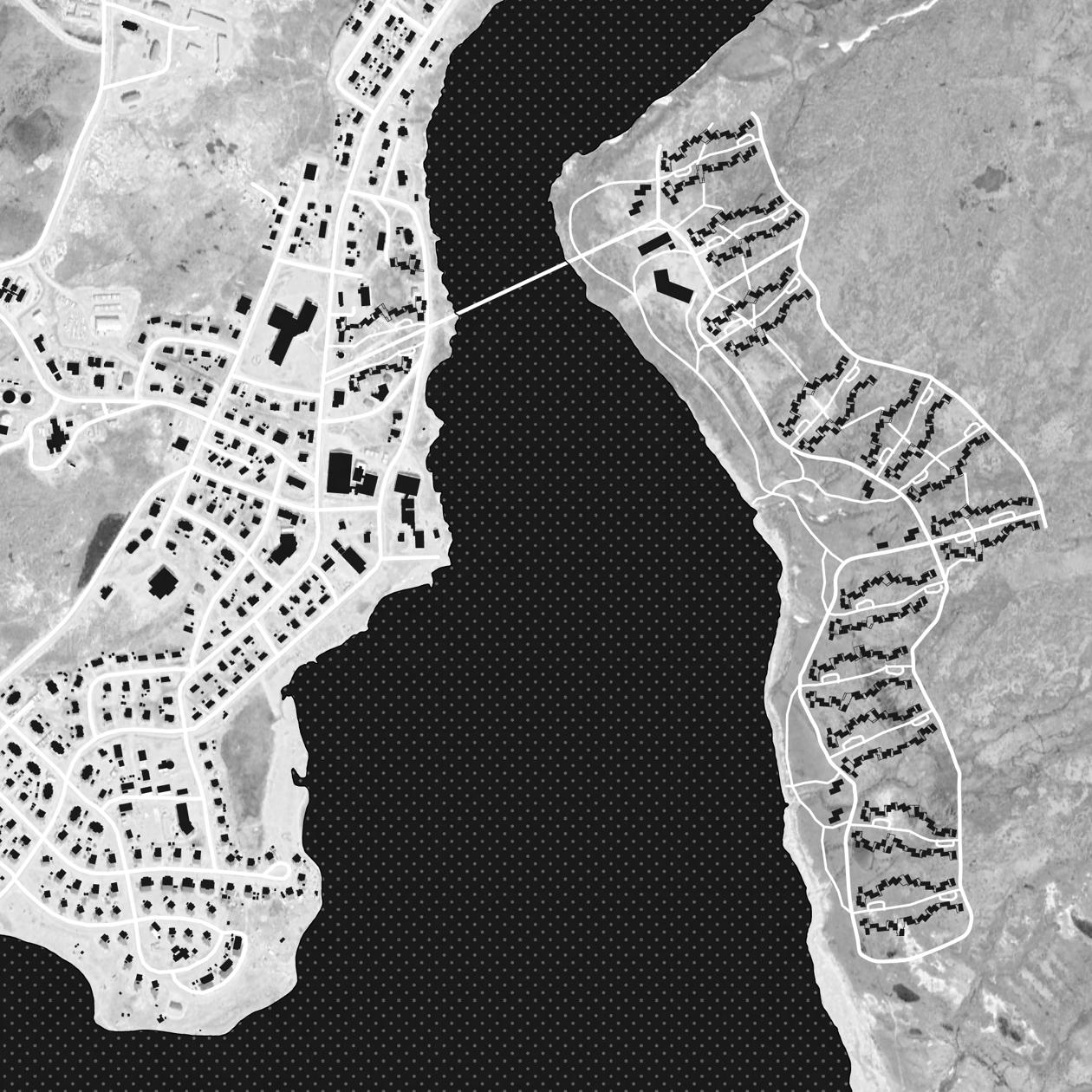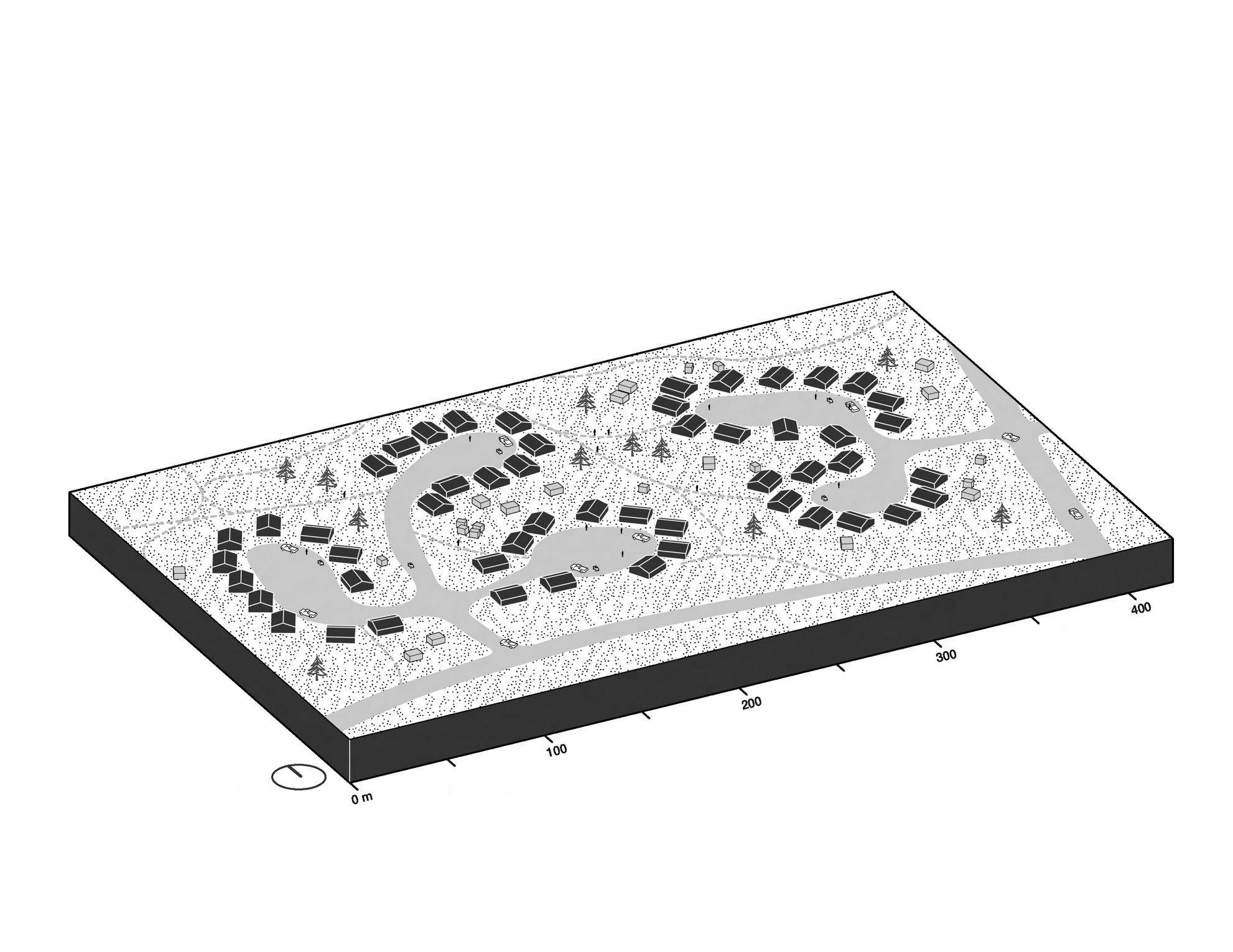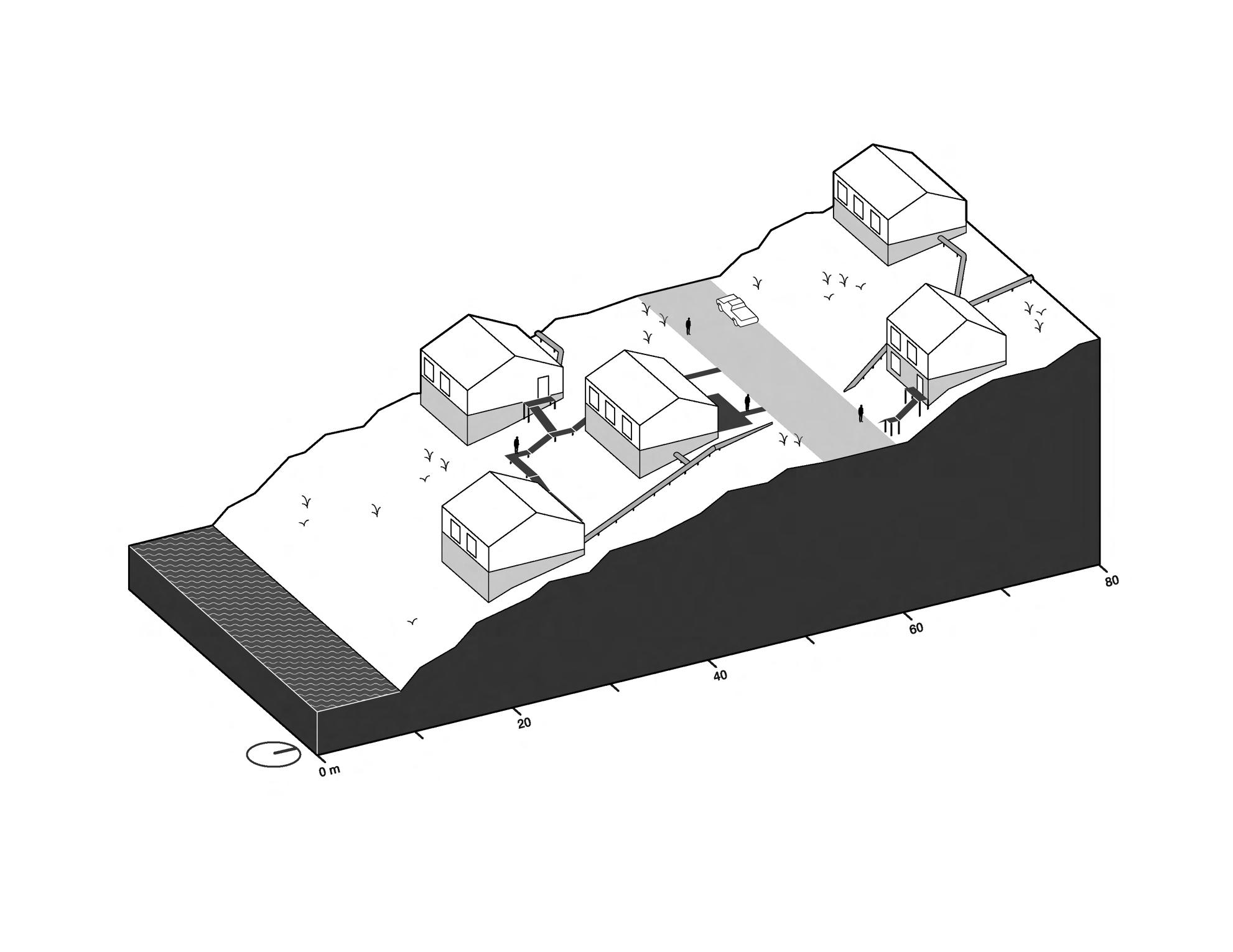 0m 0 m 400 400 800 800 1200 1200 1600 1600 living together seasonality imagibility mixity contactwiththeland c omfort& optimizatio n 64°N 25 dwellings/ha (net) utilidors emerging 19 261 (2022) +5000 bedrock Siorarsiorfik housing development: