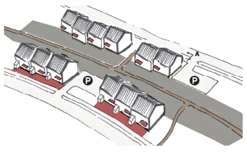 Small clusters on vacant lots provide alternative to social housing in village center and elsewhere.