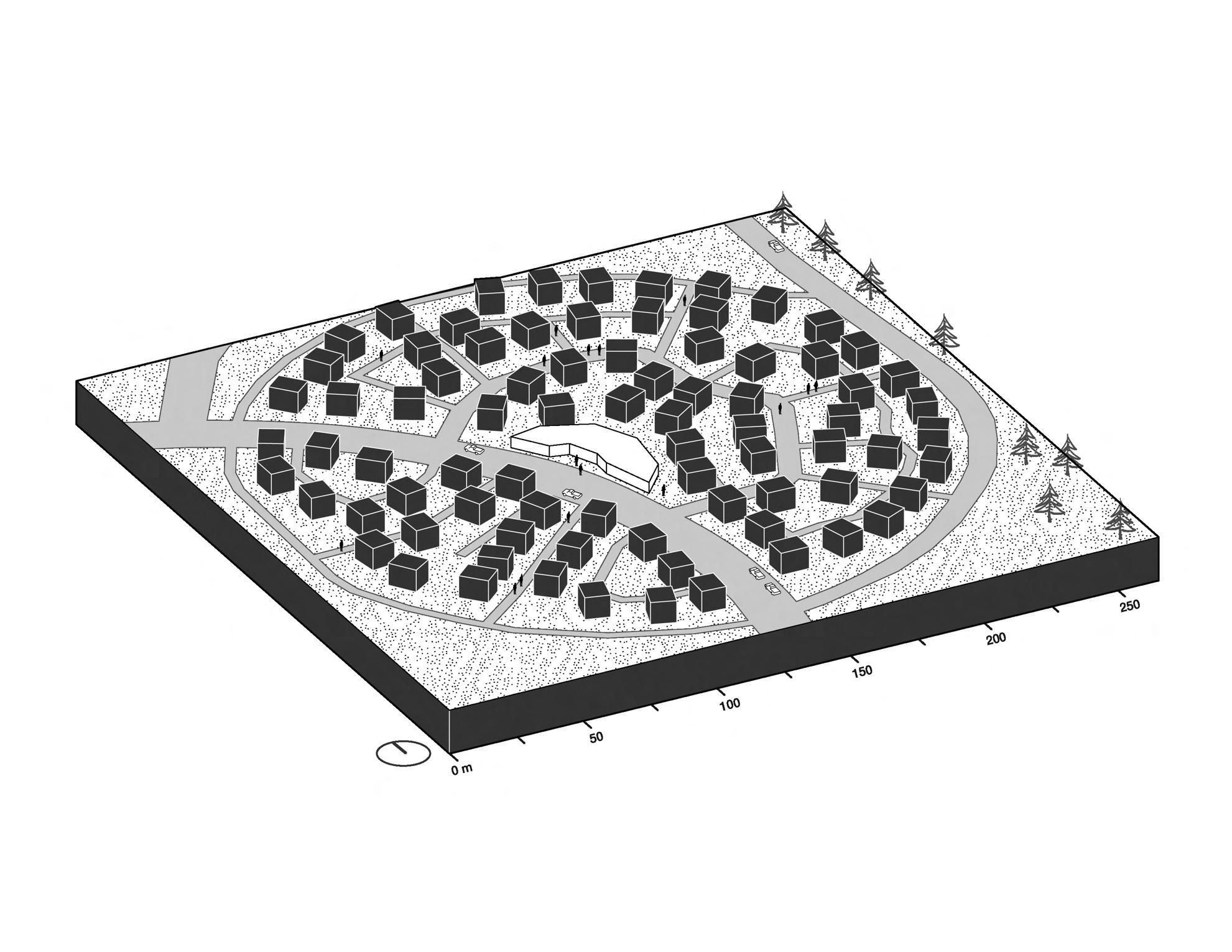 ᓱᒐᓱᐊᕐᓂᖅ ᑌᒫᑦᓭᓇᑐᐃᓐᓇᐅᖏᑦᑐᖅ Doing Things Differently : An atlas of creative ideas to plan, dwell and build sustainably in Nunavik. This research is funded by the Sentinel North program of Université Laval (Canada First Research Excellence Fund), 2019-2023. 15 0m 0 m 400 400 800 800 1200 1200 1600 1600 living together seasonality imagibility mixity contactwiththeland c omfort& optimizatio n 55°N promising 374 (2019) 26 dwellings/ha (net) aqueduct + sewage soil Penguin-inspired housing district for Innovation Center employees