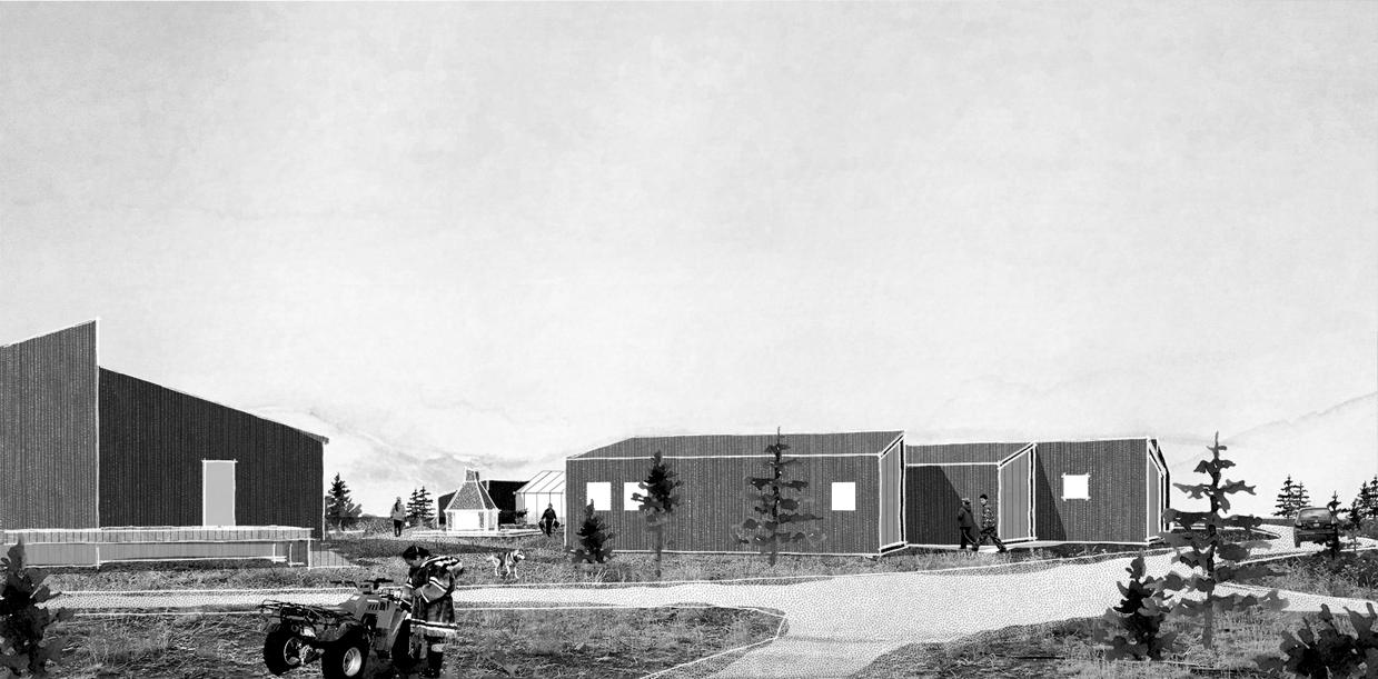 Design: A. Boulanger Cartier, P-O. Demeule, M-C. Gravel (2016) community facility and shared parking utilidor under platform flexible shared spaces / porches oriented views connected wooden walkway earthen walls (local ressource) 0m 0 m 400 400 800 800 1200 1200 1600 1600 0m 40 60 20 80 living together seasonality imagibility mixity contactwiththeland c omfort& optimizatio n 62°N 1483 (2016) 20 dwellings/ha (net) Photo credits: https://issuu.com/hlnq.linq/docs/imaginer-imagining, pp. 48-51.