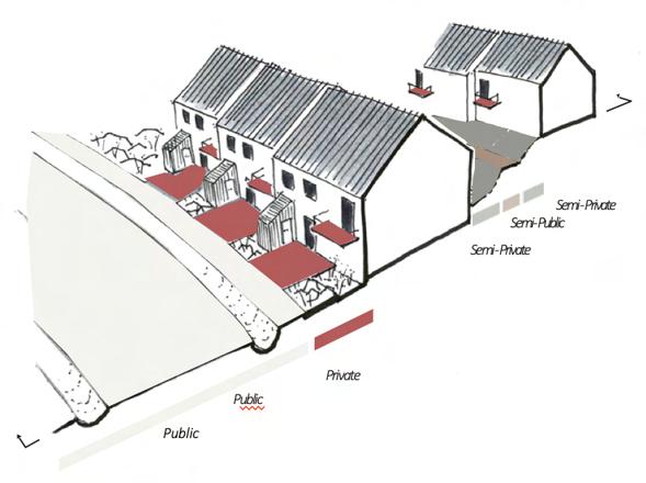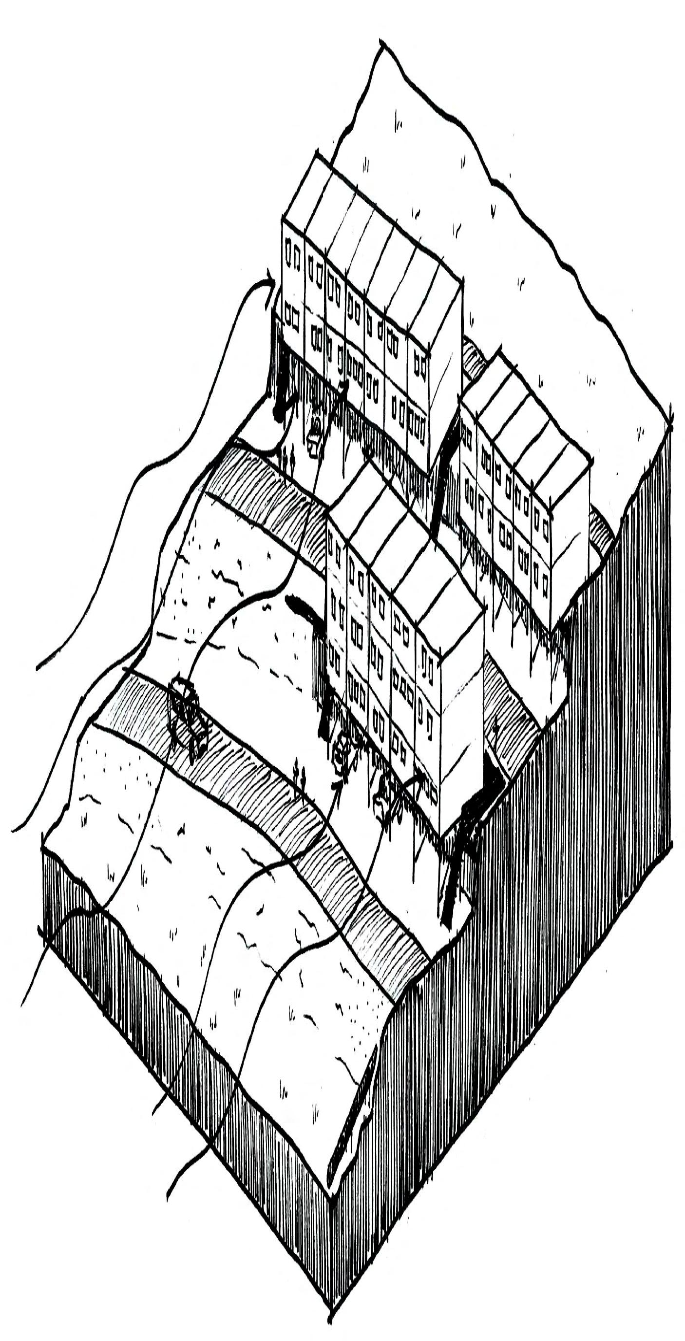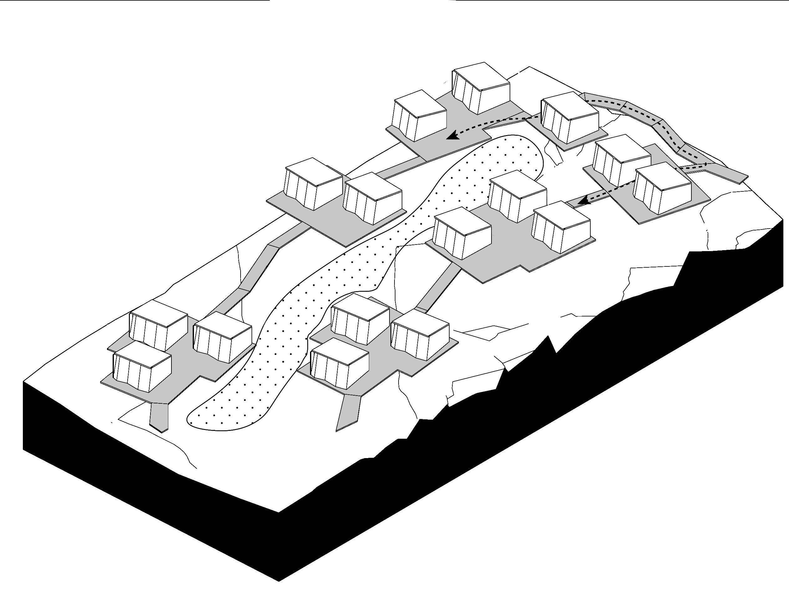 • Non-continuous and “porous” branches with shared decks for activities and solidarity among neighbors.