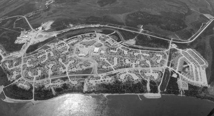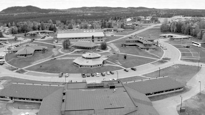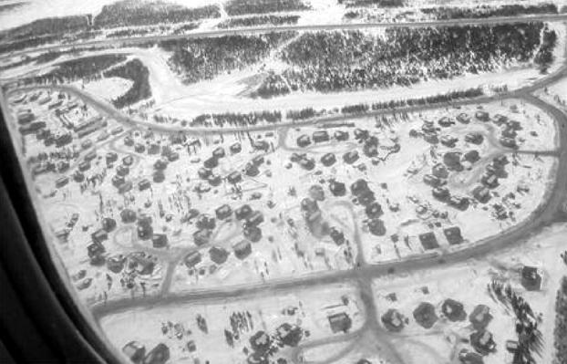 Buildings sit on permafrost ; technical considerations to preserve the permafrost frozen.