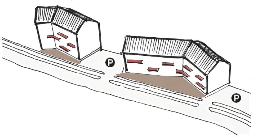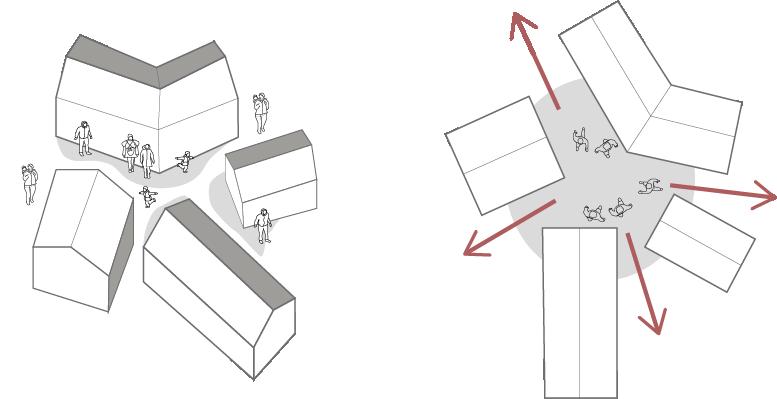 • Houses arranged in pairs with flexible, temperate shared space in between to create livable thresholds.