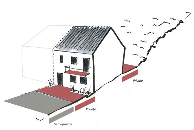 • Houses built on rocky hillside foster close relationship with the land and among neighbours.