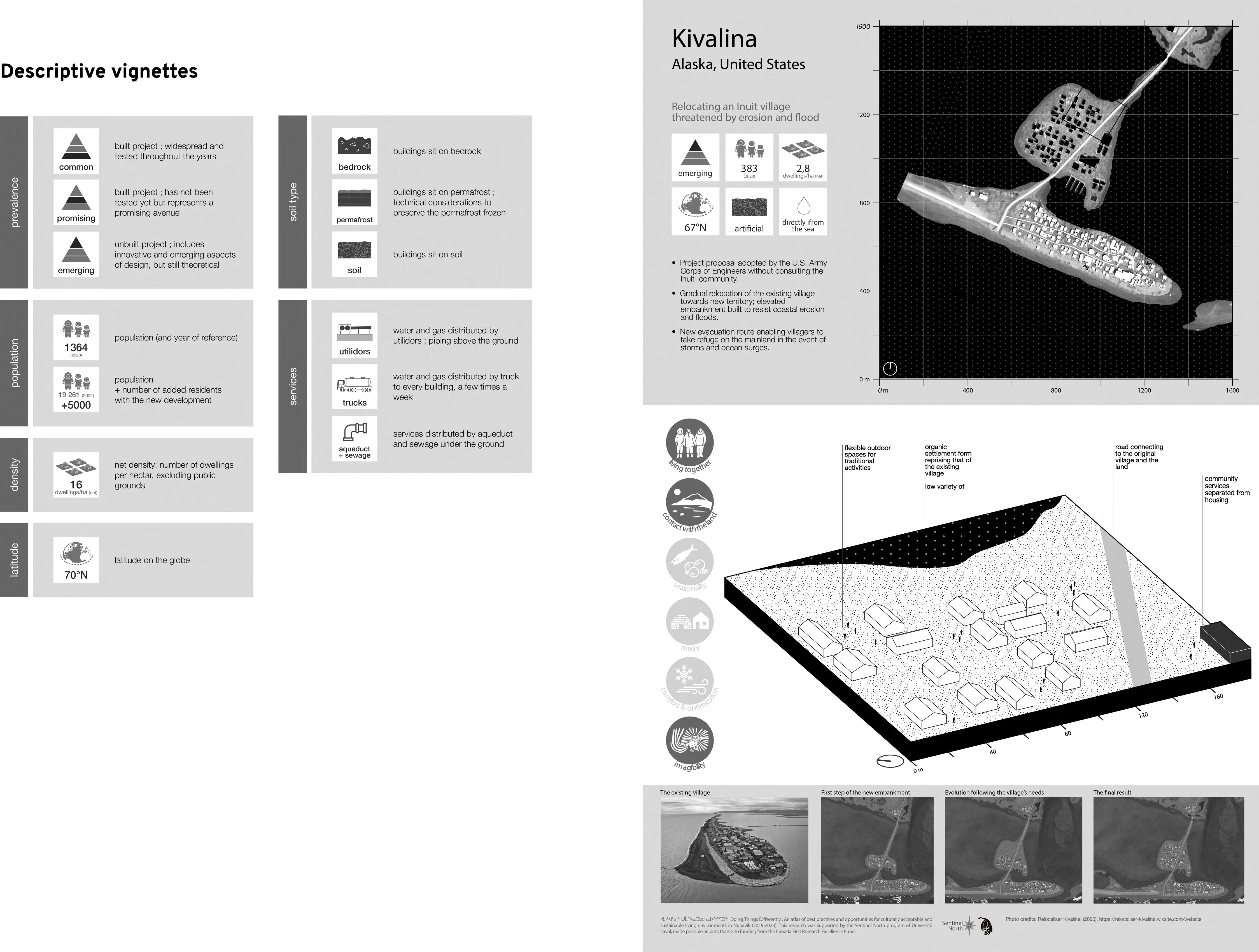 As part of the Doing Things Differently atlas, this collection of 16 illustrated one-pagers describes and compares the forms, densities and qualities of villages (or urban areas) from different parts of the Circumpolar. They are intended as a discussion tool among decision-makers, organizations and consultants interested in planning and design practices in Nunavik.