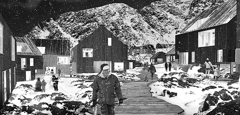 0m 0 m 400 400 800 800 1200 1200 1600 1600 0 m 20 40 60 80 living together seasonality imagibility mixity contactwiththeland c omfort& optimizatio n 65°N common 2 534 + 43 dogs (2020) 7 dwellings/ha (net) aqueduct + sewage bedrock use of topography, a view for everyone Photo credits: (Left) skigreenlandpowder com/packages/ (Center) katinkaskovgaard blogspot (Right) 70nvisjonsrapport