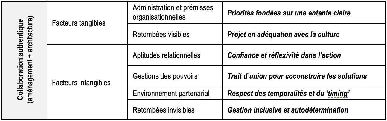 Table 1: Tangible and intangible factors of a successful research partnership based on an exploratory review of literature conducted in 2020 (Gouin, 2024).