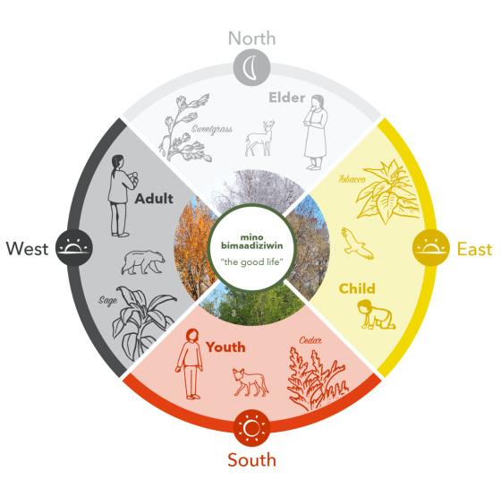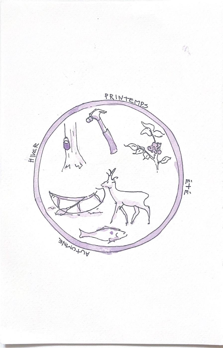 Temporality is closely associated with relationality. The notion of time is constructed and perceived differently by Indigenous communities who understand and live their connections to the land according to the seasons (Gentelet, 2009). They are aware that the actions on today’s environment affect the future, as have the actions of the past. This is affirmed in the Seventh Generation principle: the knowledge and actions of the past show the way to those of the present and together, they build a vision of the future (Jojola, 2013). The relationships with time and the seasons, along with the astute observation of the ecosystems, are all part of a traditional knowledge system that continues to evolve. They also influence subsis-