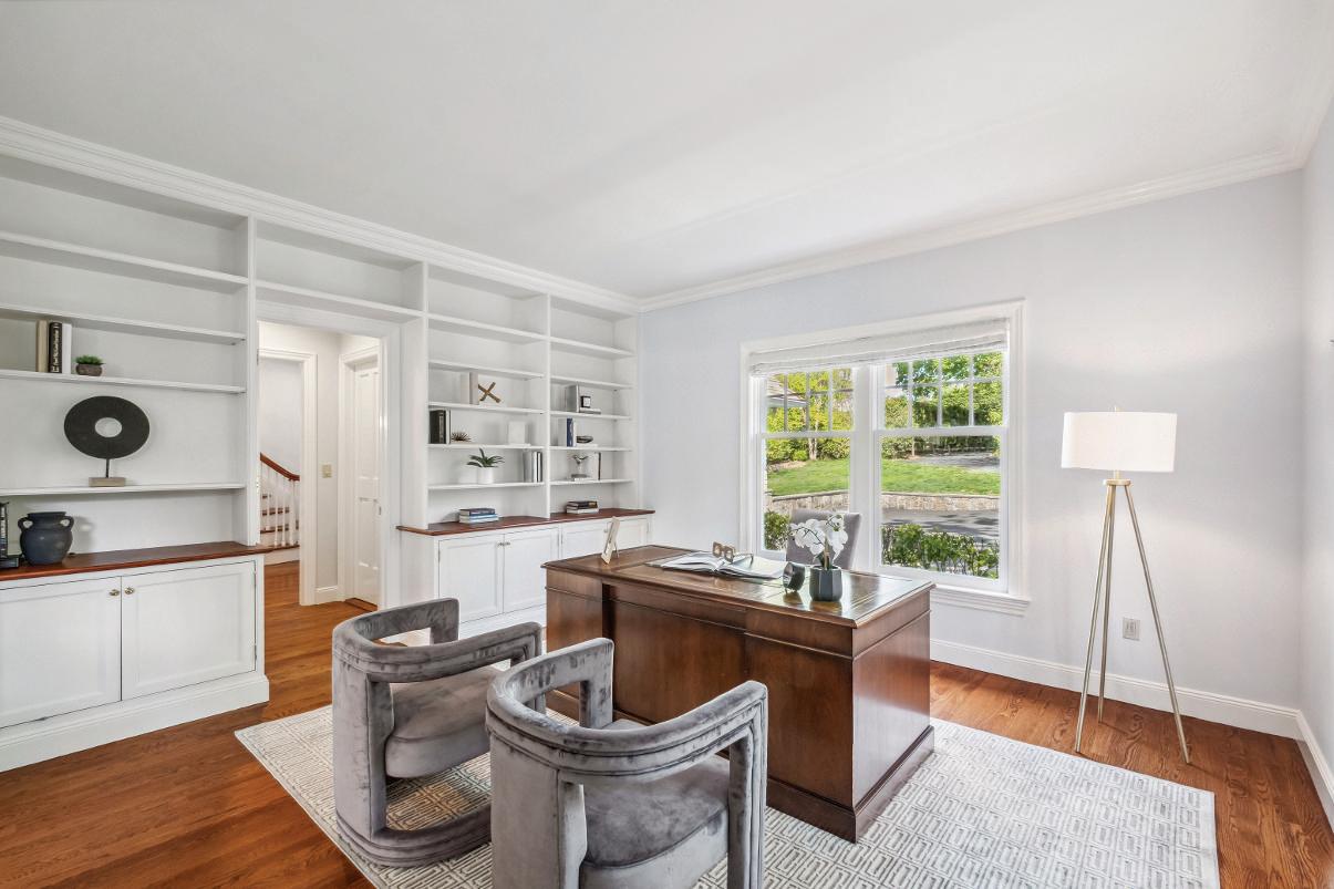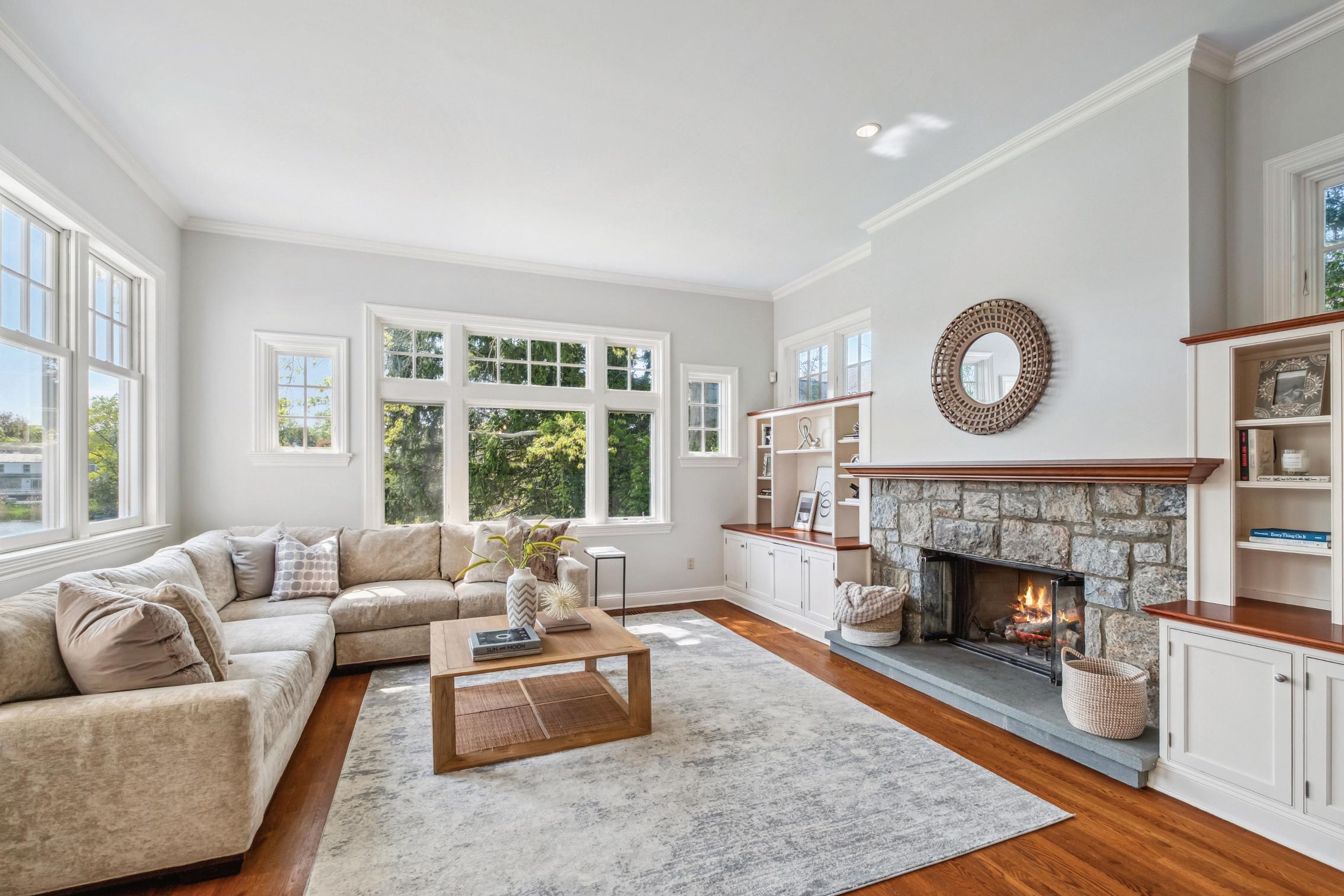 Beaut ifully t ucked aw ay on prest ig ious Pryer Lane t his architect urally st unning Dutch Colonial is nest led hig h atop a sw eeping level backyard w it h direct access to kayak ing , fishing , and paddle-boarding It ?s a w orld of it s ow n w it h breat ht ak ing w ater view s, spect acular sunset s, and tot al serenit y ? all just a short st roll to t he beach and park , Villag e and t rain. This spect acular Stoll & Stoll-desig ned hom e is t houg ht fully oriented w it h m ult iple room s opening t hroug h French doors to a fabulous entert ainer?s pat io. Inside is sunlit and brig ht w it h a sm art flow t hat perfect ly balances privacy and connect ion At t he heart is a Great Room t hat incorporates an exquisite chef ?s k itchen w it h sleek island, 2 hom ew ork st at ions and w et -bar area, and a step -dow n fam ily room w it h cozy fireplace. There?s a chic dining room w it h a 2-sided fireplace opening to t he seriously st ylish living room , a spacious office w it h built -ins, 2 pow der room s, a larg e laundry and a fitted m udroom opening to t he 2-car g arag e Upst airs are 5 larg e bedroom s, 3 of w hich are en-suite and 2 t hat share a hall bat h The prim ary is pure bliss w it h 2 w alk-in-closet s and an adjoining second office