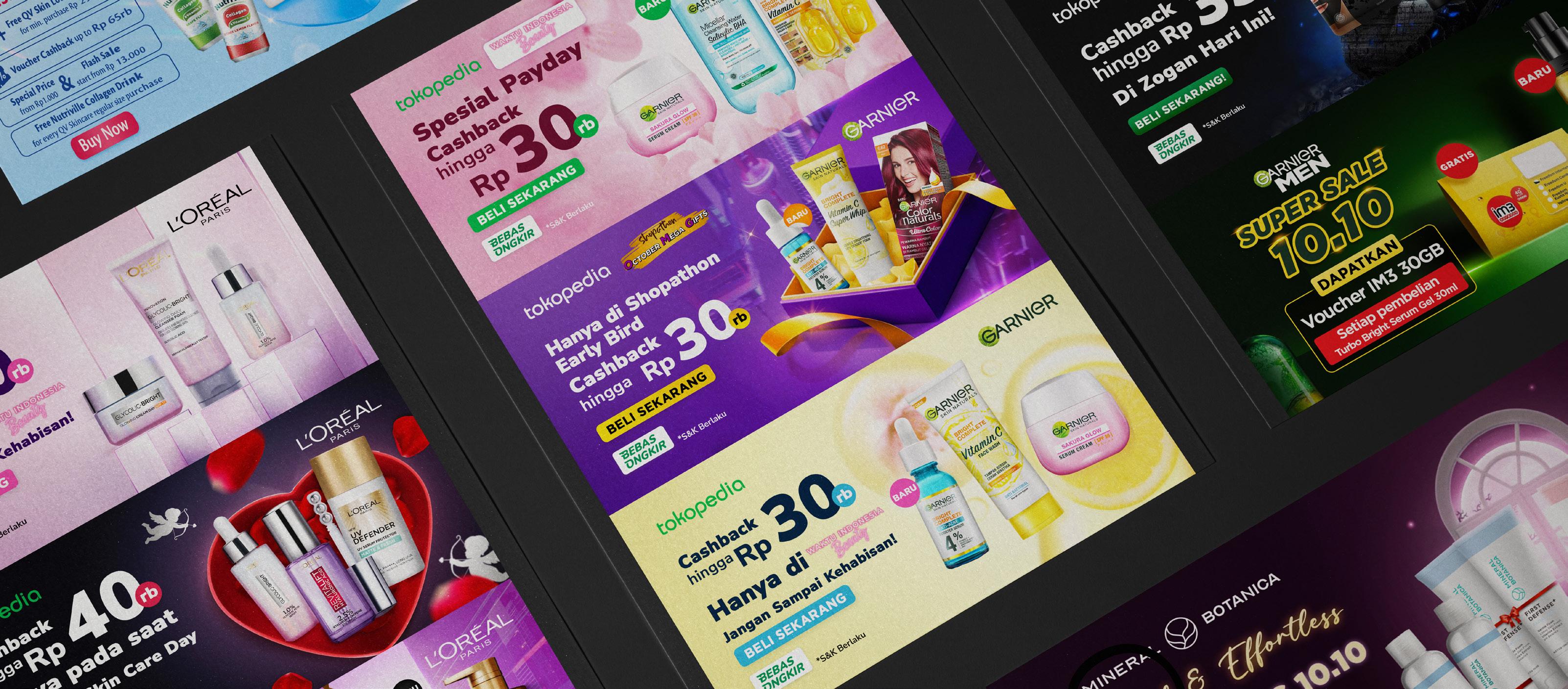 As an Associate Creative Designer at SIRCLO-Commerce, I am responsible for supporting creative materials for enterprise marketing purposes at multiple marketplace. I am also a dedicated designer for L’Oreal Group: Consumer Product Division(CPD) at Tokopedia.