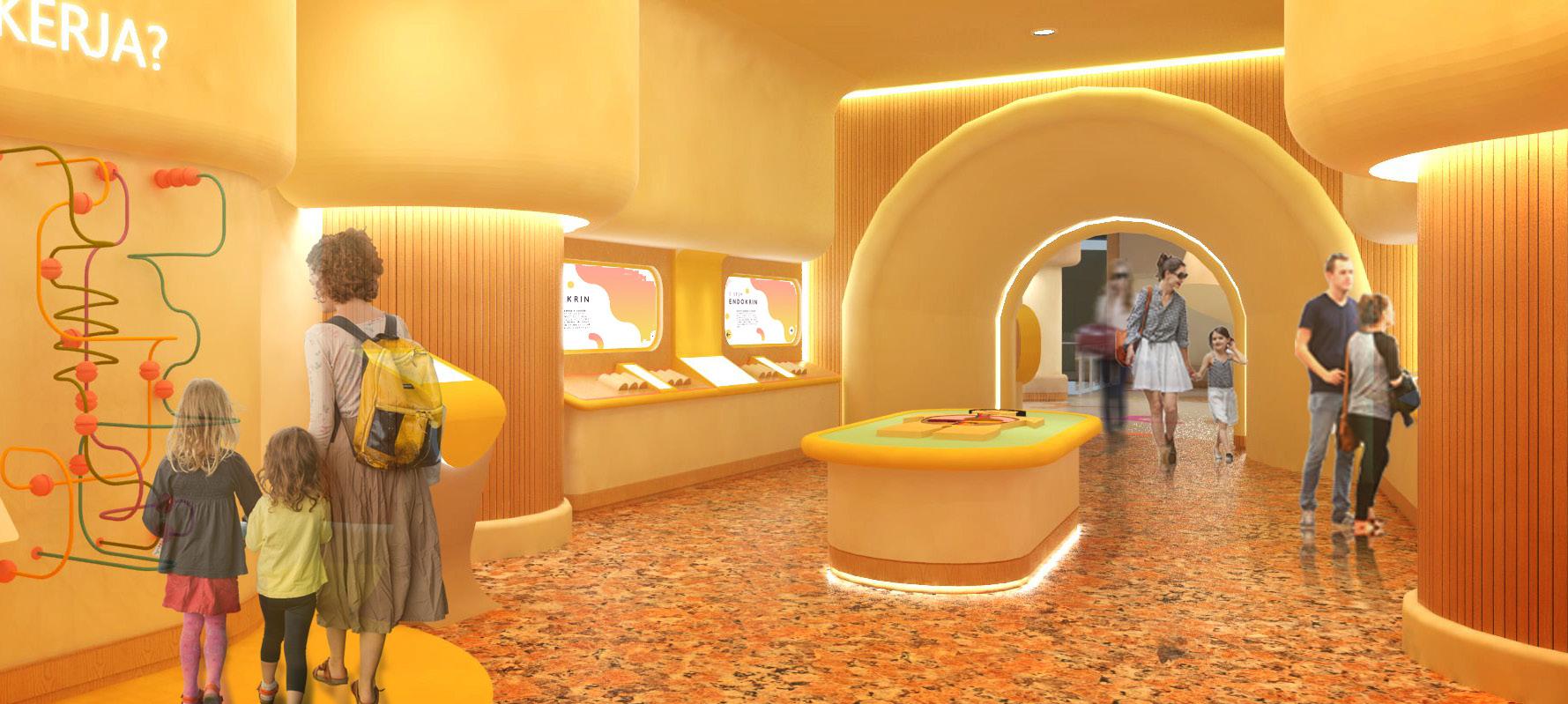 The facility’s design are focusing on the usage of interactive technology and interactive for all five senses (hearing, touch, smell, sight, and taste) to bring innovation into content education, especially about human physiology. To built a cohesive design as a whole, I also created the facility’s brand identity and other design such as UI/UX design and editorial design. Designing this project was truly an exciting process because I got the opportunity to learn new things along the way such as branding, editorial, and UI/UX designing.