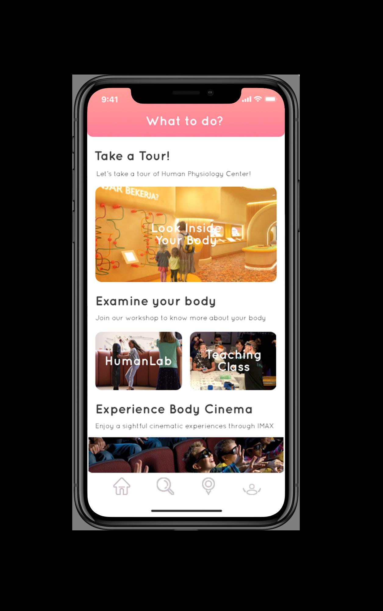 The main purpose of HUP is to guide visitor on everything they want to know about Human Physiology Center. With HUP, visitors can access a detailed information of each zone and attraction on Human Physiology Center, and also purchasing tickets. Adult user can access any detailed information regarding to human physiology with HUP, especially parents, they can also describe the human physiology through HUP.