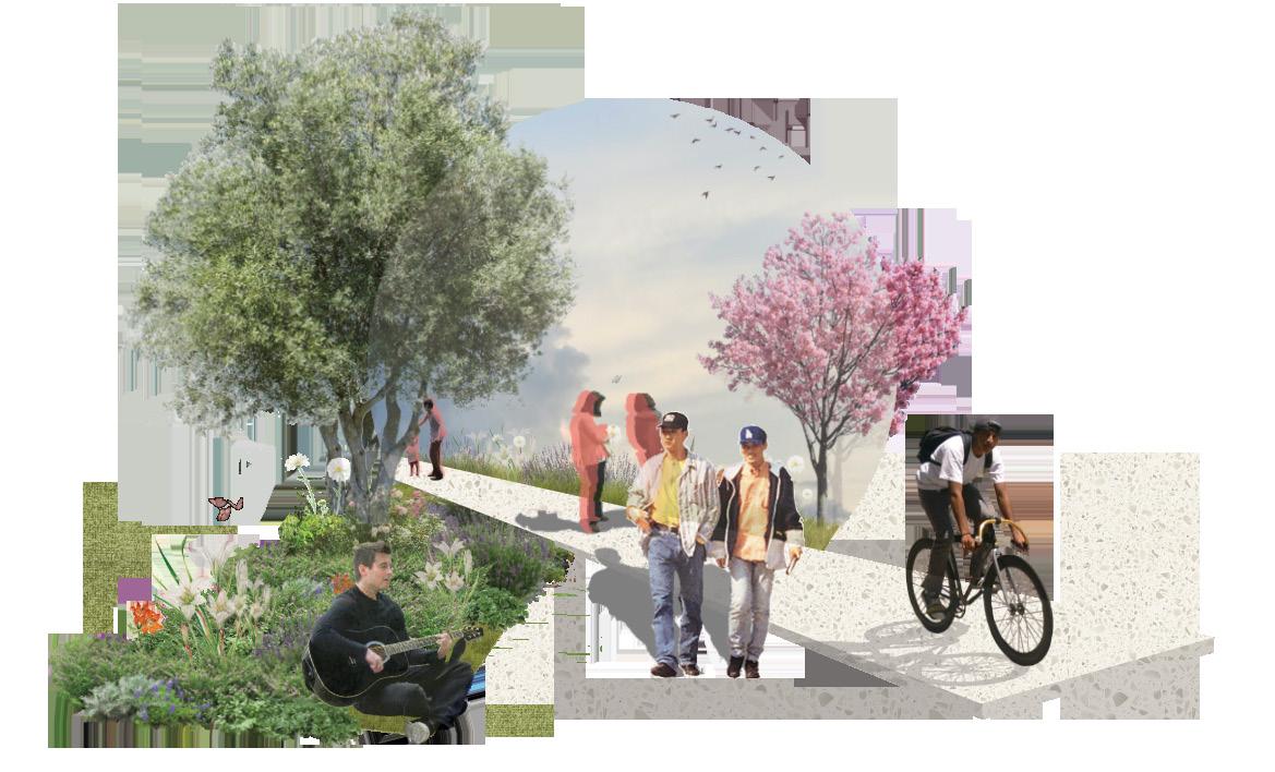 create a green space that drastically improves air quality for the residents of Pacoima. Dividing the site into “hubs” was the perfect way to create a positive and secure space that purifies the air.