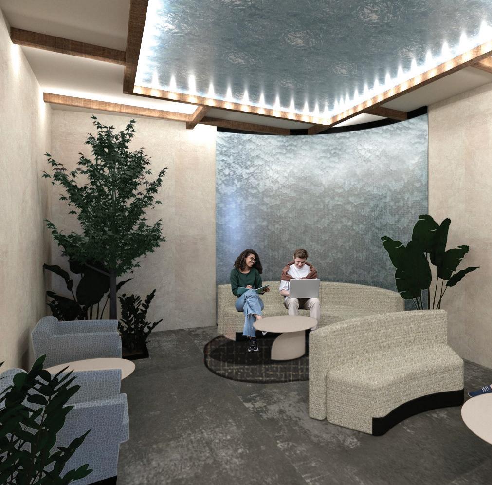 OASIS IS A HEALTHCARE CENTER LOCATED ON UNMC’S CAMPUS IN OMAHA, NE. IT SERVES AS A GETAWAY FROM CAMPUS WHERE BOTH STUDENTS AND FACULTY CAN GO FOR WELLNESS APPOINTMENTS OR RELAXATION. WATER FEATURES ARE INCORPORATED THROUGHOUT THE DESIGN DUE TO THEIR CALMING AUDIO AND VISUAL PROPERTIES.