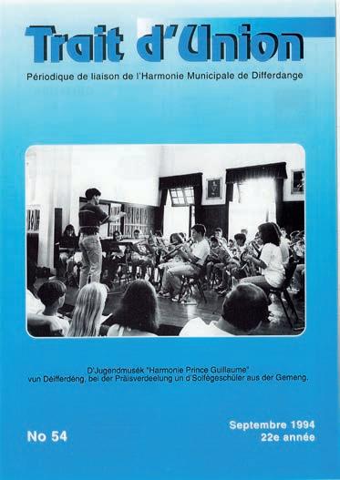 Als Vizepresident vun der Déifferdenger Musek presentéieren ech Iech voller Freed dës besonnesch Editioun vun eiser Veräinsbrochure, dem Trait d’Union. Mir feiere 50 Joer vun eiser Veräinsbrochure. Déi éischt Editioun ass am Abrëll 1972 publizéiert ginn. Wéi bei deene leschten Ausgaben och, war et dës Kéier erëm e groussen Opwand eist Blat zesummen ze stellen. Ech wéilt dofir direkt jidderengem Merci soen, deen dozou bäigedroen huet, datt mer déi heiten Traditioun weiderféiere kënnen. E besonnesche Merci geet dobäi un all d’Geschäftsleit, déi eng Annonce gemaach hunn souwéi un déi Leit, déi eng Page Offerte gemaach hunn, an eis doduerch finanziell ënnerstëtzen.