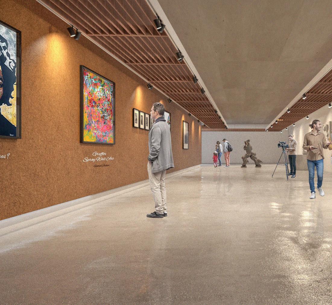 Renderings. _ Interior : Art Gallery where People Come to See the Street Artworks & Murals