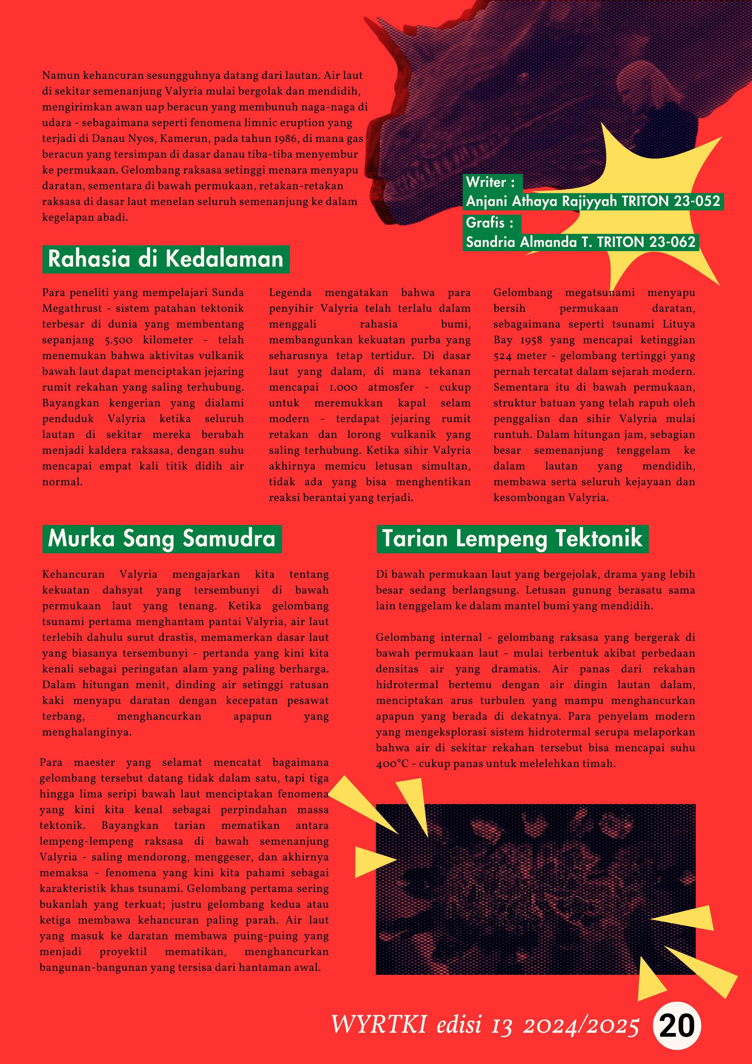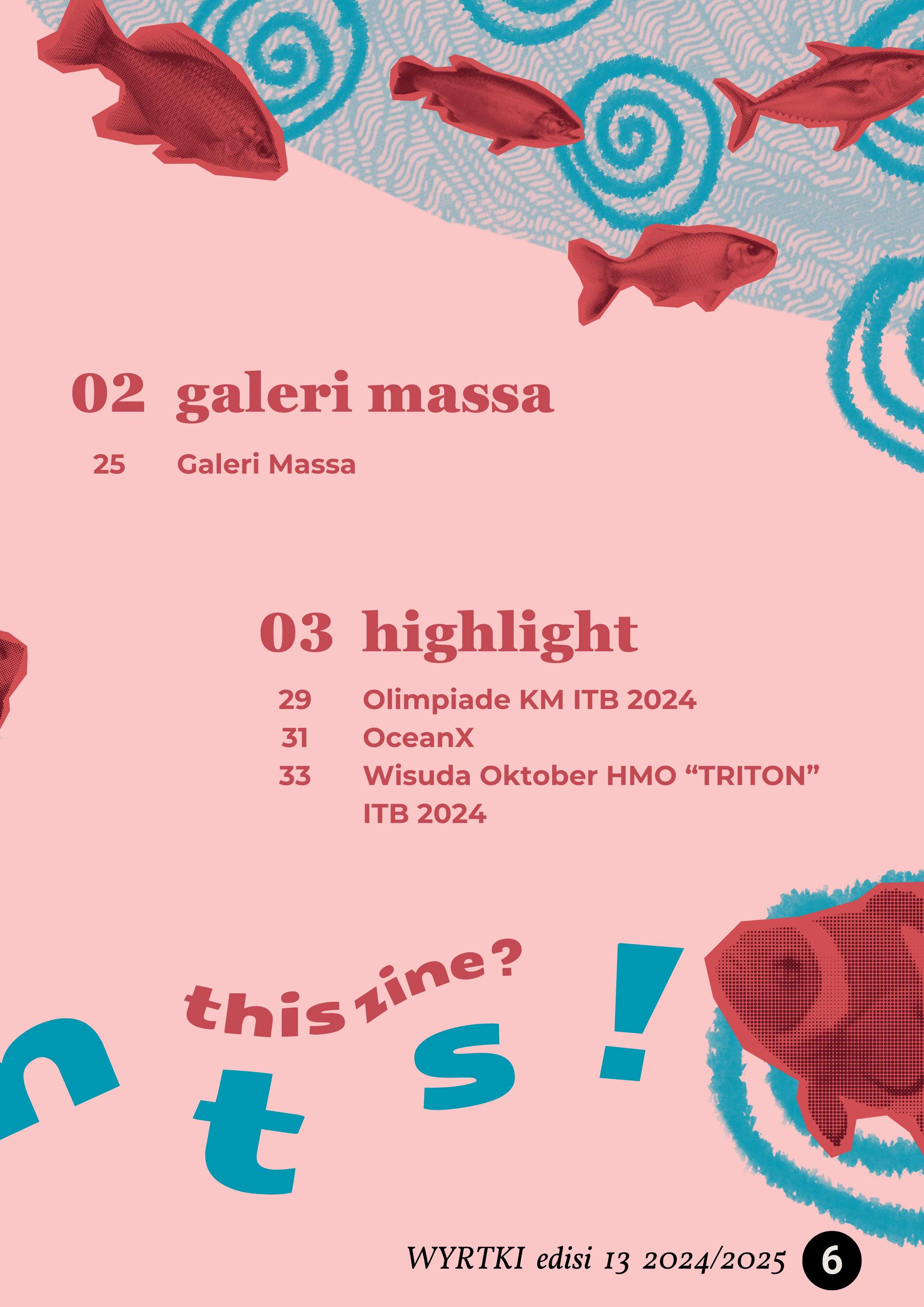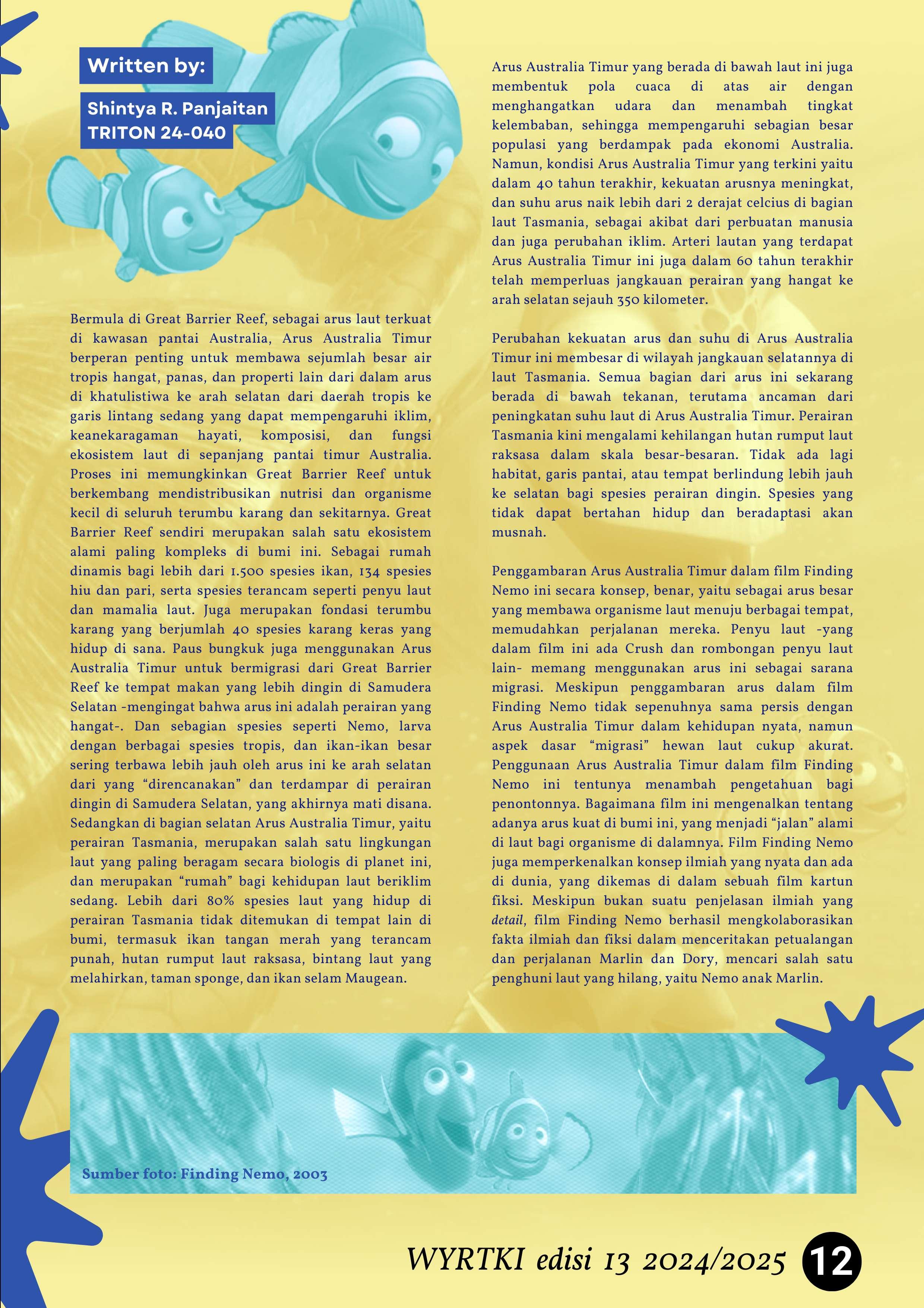 Pada edisi ini, tim telah merangkum berbagai artikel, mulai dari sumber utama eksistensi makhluk hidup yang diangkat dalam "Seaspiracy", hal menarik mengenai film bertema laut seperti The Meg, Finding Nemo, Ponyo, Moana, dan Underwater mengenai Teror 7 Mil di Bawah Laut dan masih banyak bahasan menarik lainnya.