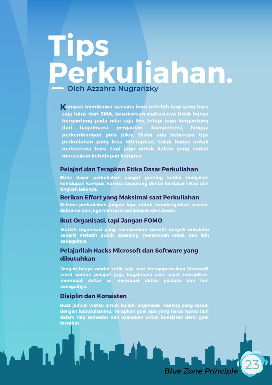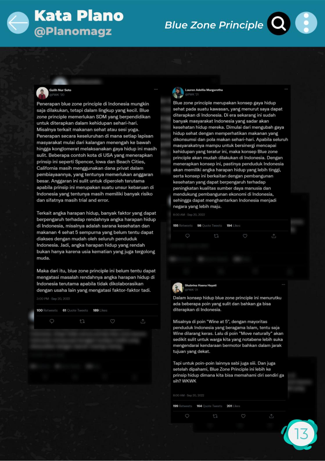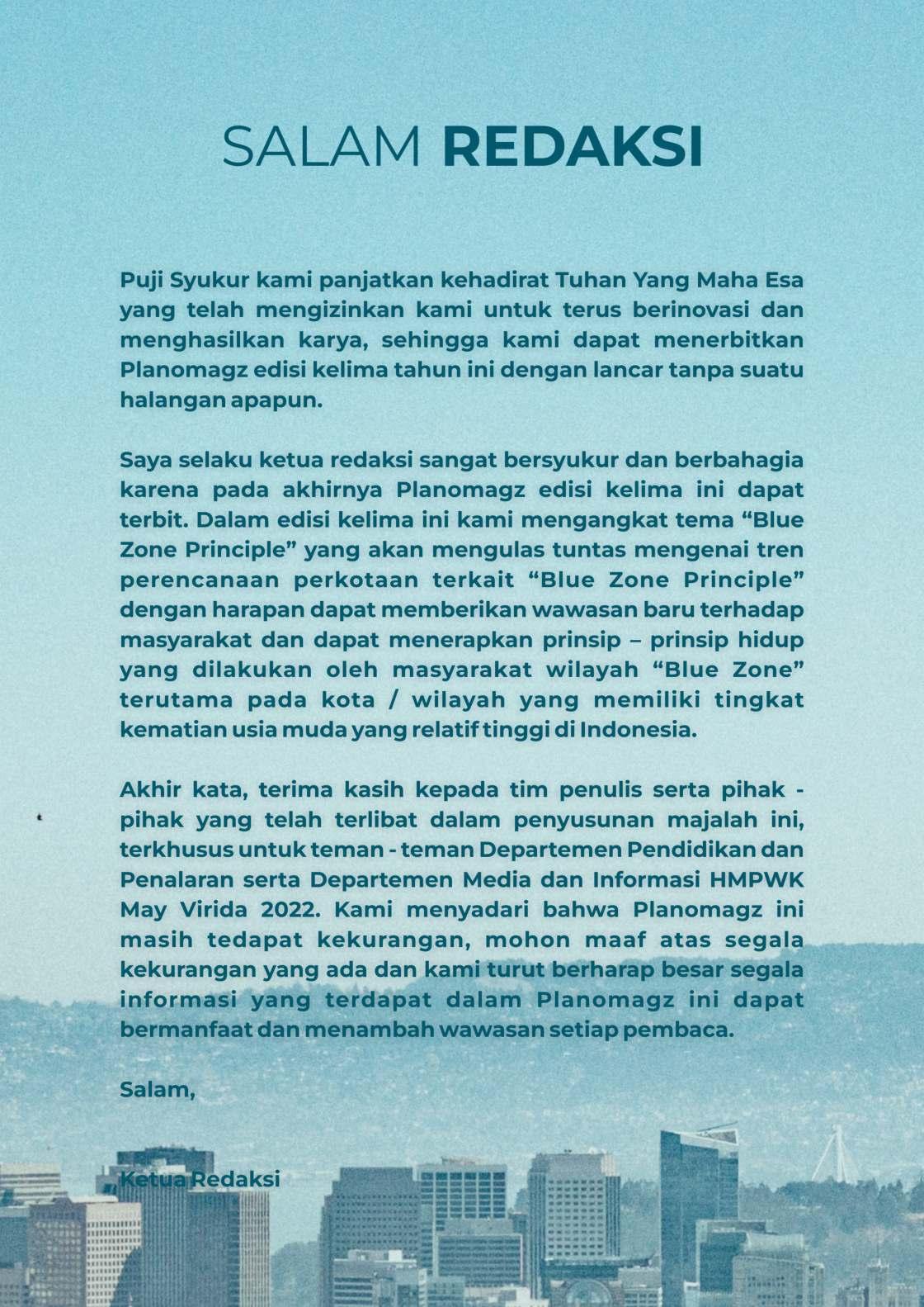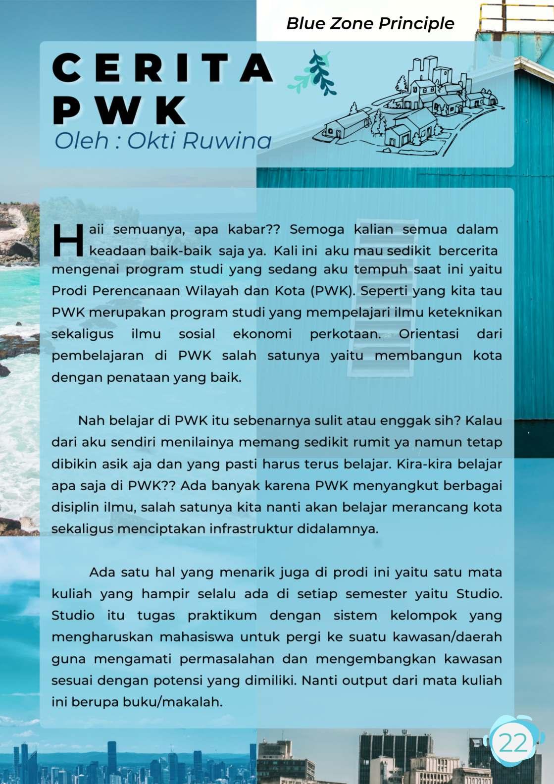 Departemen Diklar dan Medinfo kembali menerbitkan Planomagz nih alias Majalahnya anak PWK. Pada Planomagz edisi 5 ini mengangkat tema "Blue Zone Principle" yang membahas terkait bagaimana lifestyle dari penduduk wilayah - wilayah yang dikategorikan sebagai "blue zone" yang dipercaya memiliki umur yang relatif lebih panjang dari penduduk wilayah lainnya serta bagaimana pendapat orang-orang terkait penerapan hal tersebut di Indonesia dan pastinya di planomagz ini juga terdapat kejutan - kejutan lainnya.
