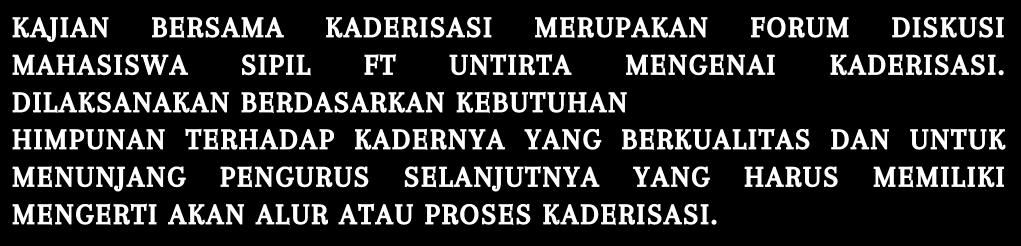 FT UNTIRTA adalah sebagai sarana/wadah untuk mengembangkan potensi jati diri dan aspirasi mahasiswa Teknik Sipil Fakultas Teknik Universitas Sultan Ageng Tirtayasa