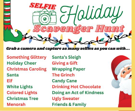 Get in the spirit of the Holidays by photographing yourself with as many of the 18 prompts as you can this season. Each prompt has a value and creativity counts! Have a blast as you enjoy this festive time! If a tie happens, we will put most creative selfies up to a community vote to determine the winner.