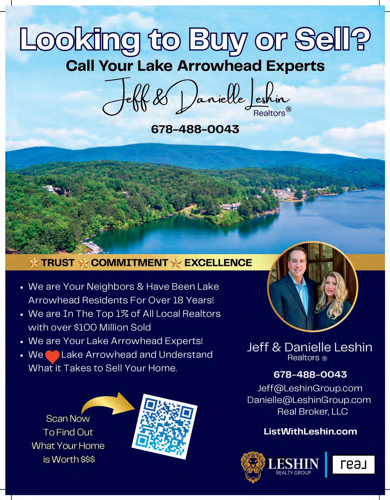 Lake Arrowhead Living is published FOR FREE by Front Porch Atlanta for Lake Arrowhead Yacht & Country Club and the Lake Arrowhead Property Owners Association. Please support the businesses that advertise to make publishing your newsletter possible. Subject matter published is the opinion of the author and does not necessarily reflect the opinion of the publisher of this newsletter. Professional advice should be obtained before making any decision in which a professional is readily available. Advertisers assume responsibility for the content of the ads placed in this publication. Material published may not be reproduced without the written permission of Front Porch Atlanta.