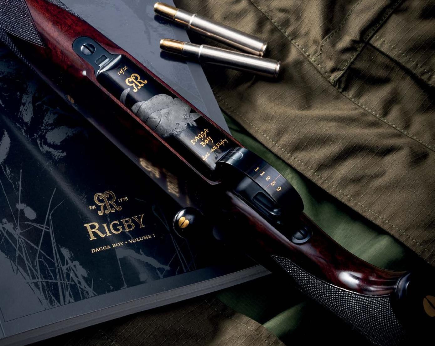 An exclusive collection of 12 Big Game ri es, chambered in .416 Rigby - a tribute to ethical hunting and African bu alo conservation. JOHN