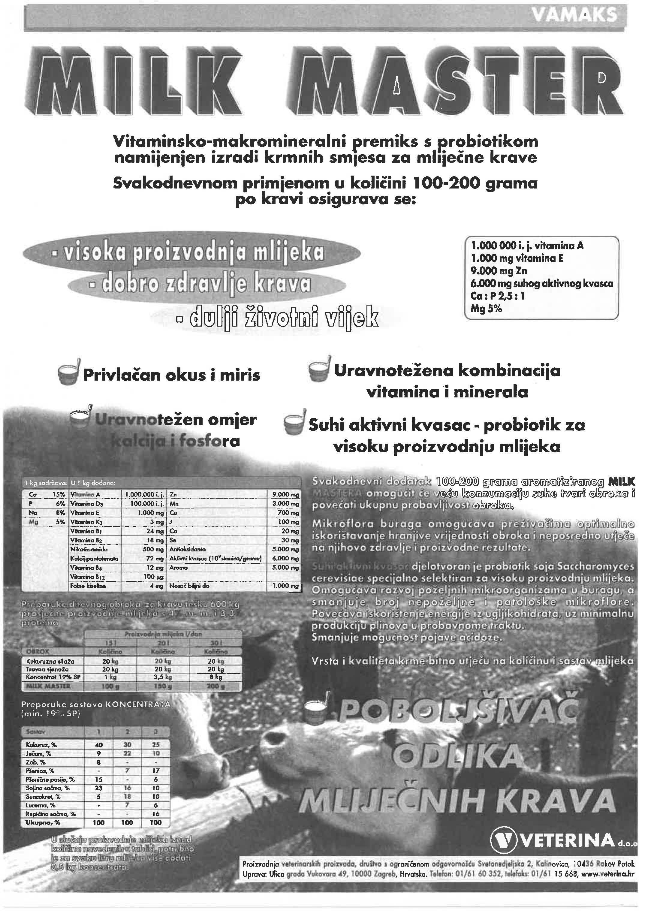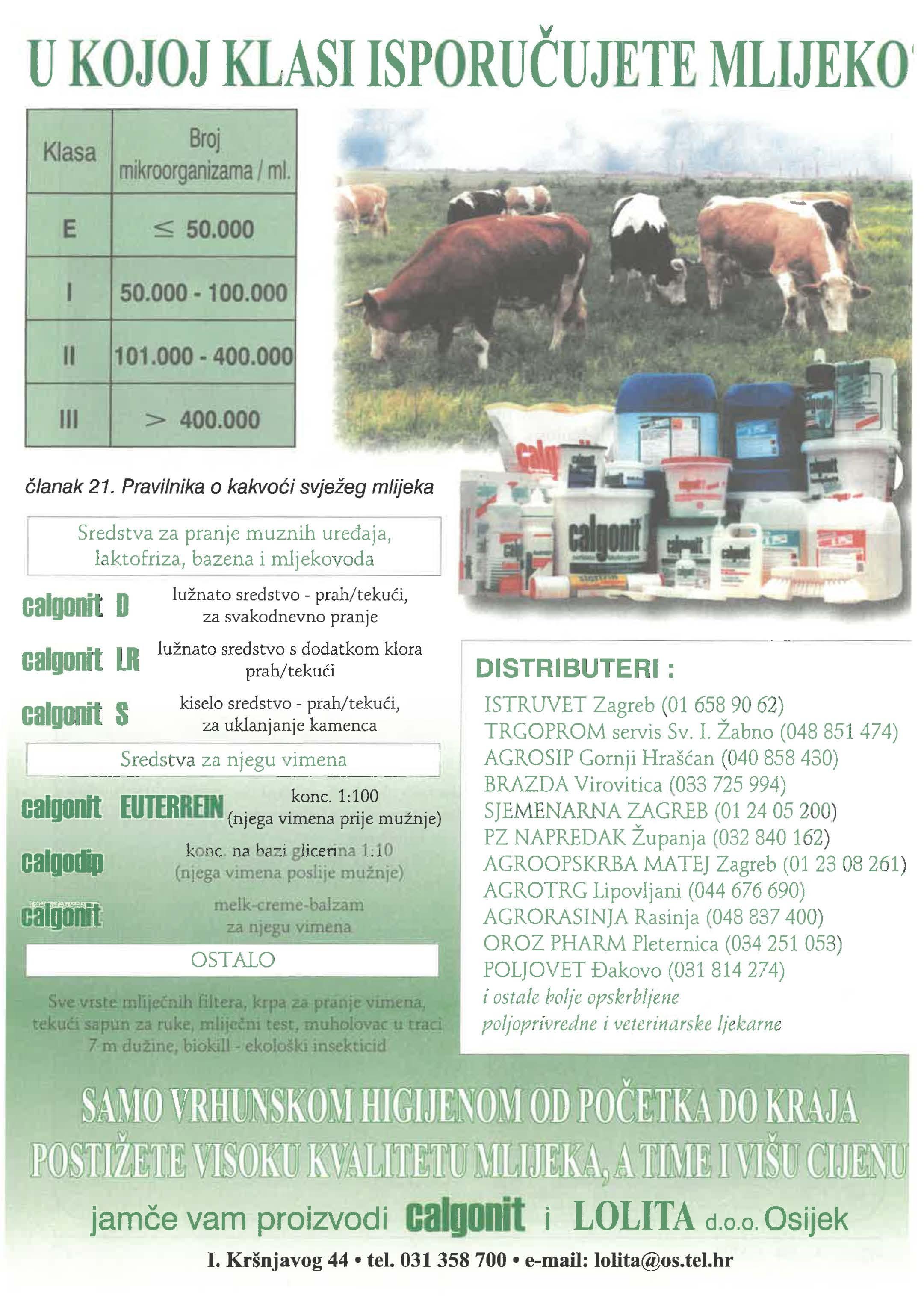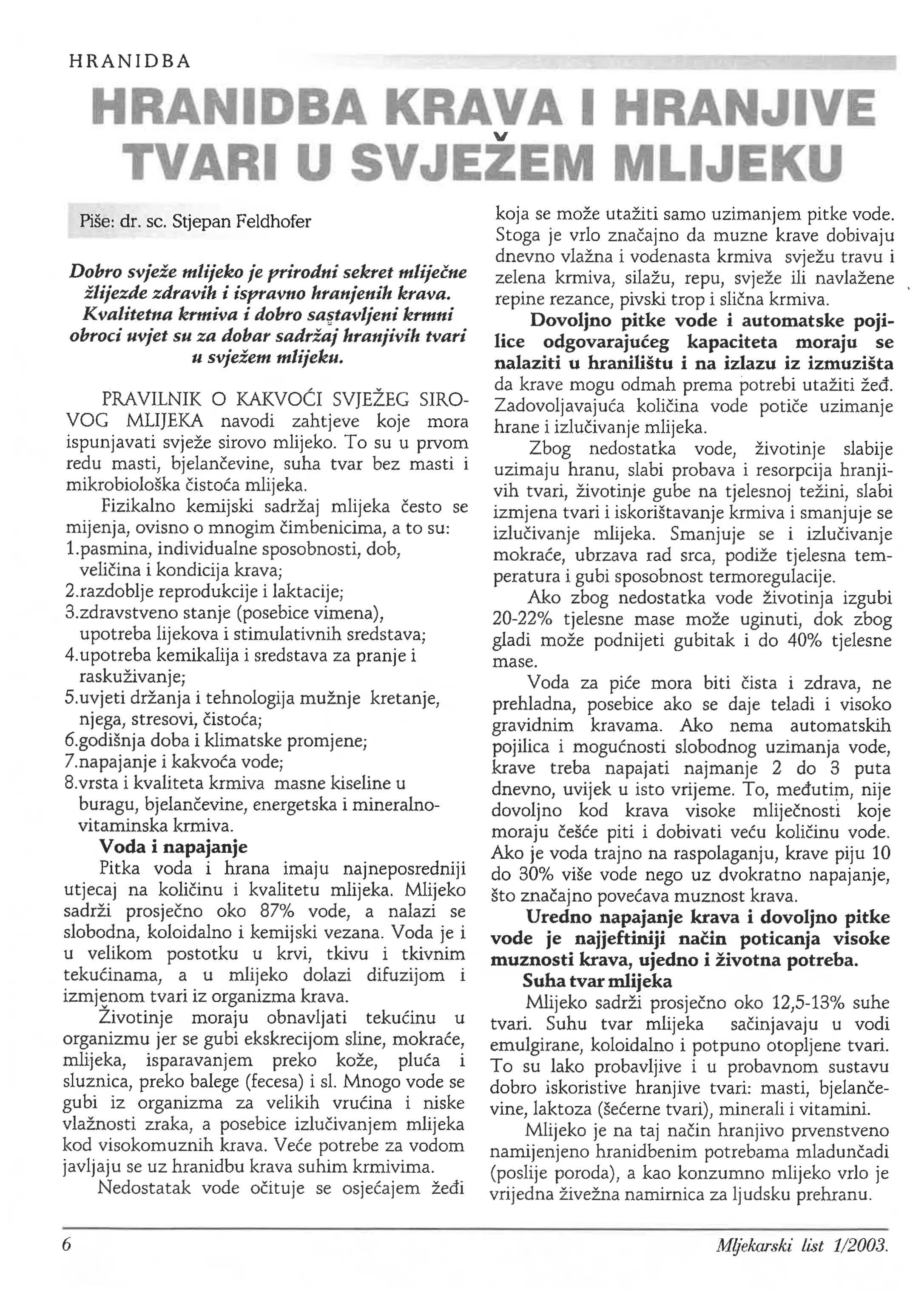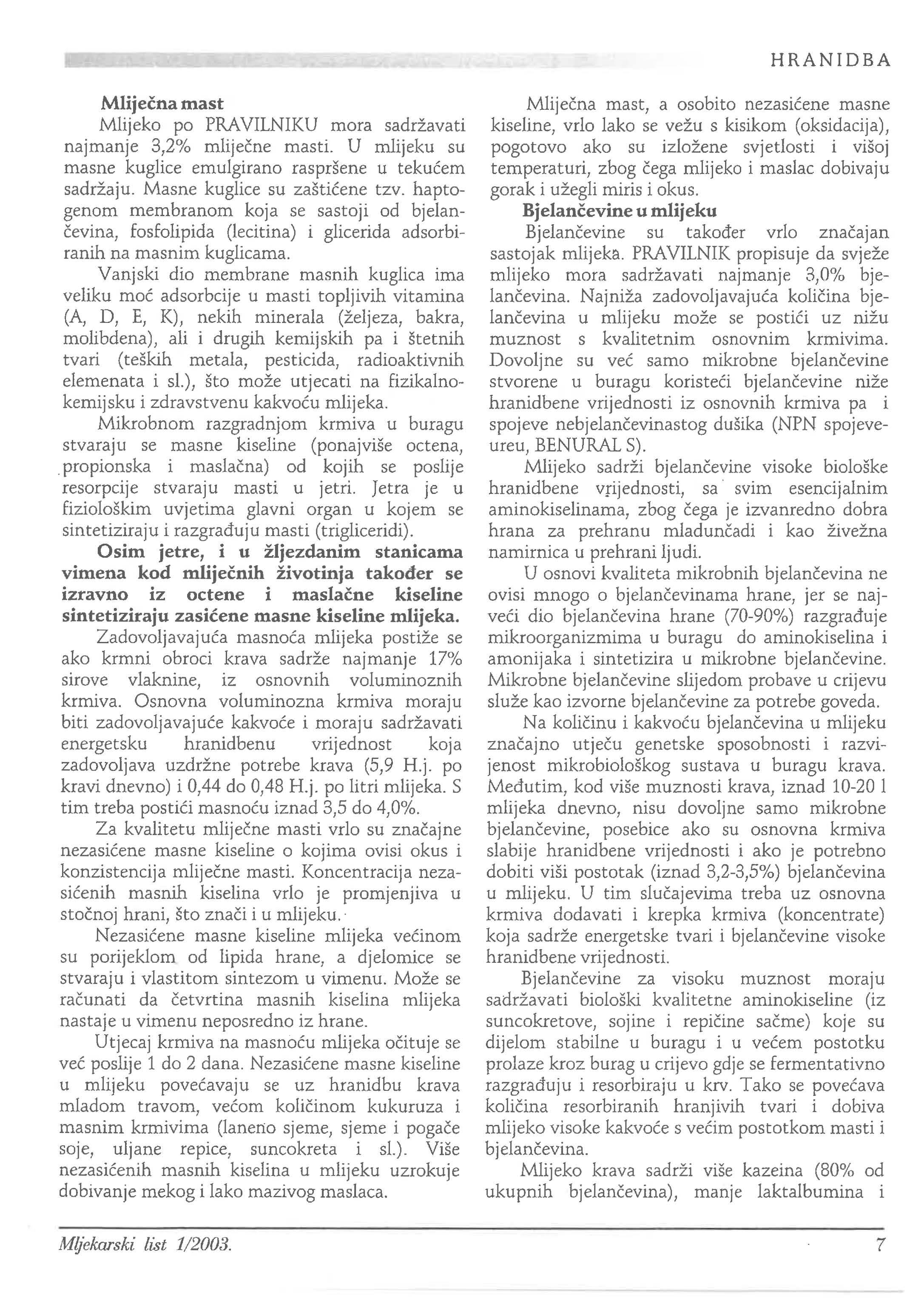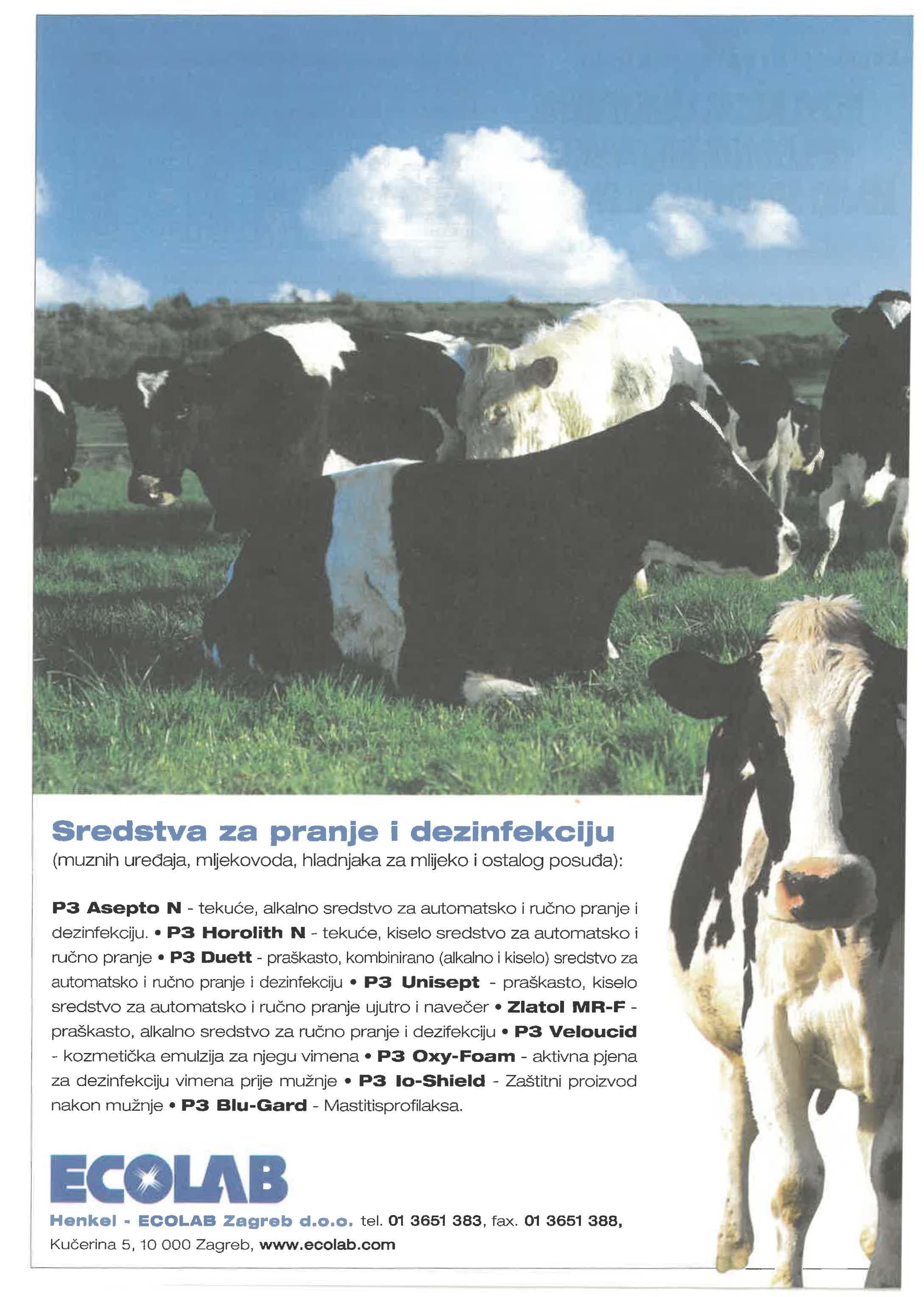 žlijezde zdravih i ispravno hranjenih krava. Kvalitetna krmiva i dobro sa~tavljeni krmni obroci uvjet su za dobar sadržaj hranjivih tvari u svježem mlijeku.