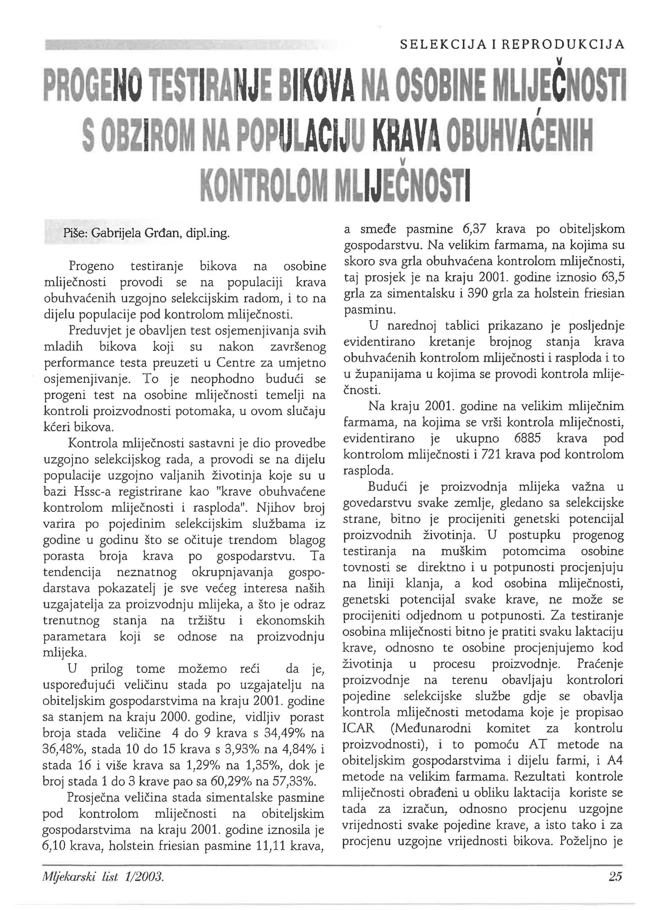 Progeno testiranje bikova na osobine s obzirom na populaciju krava