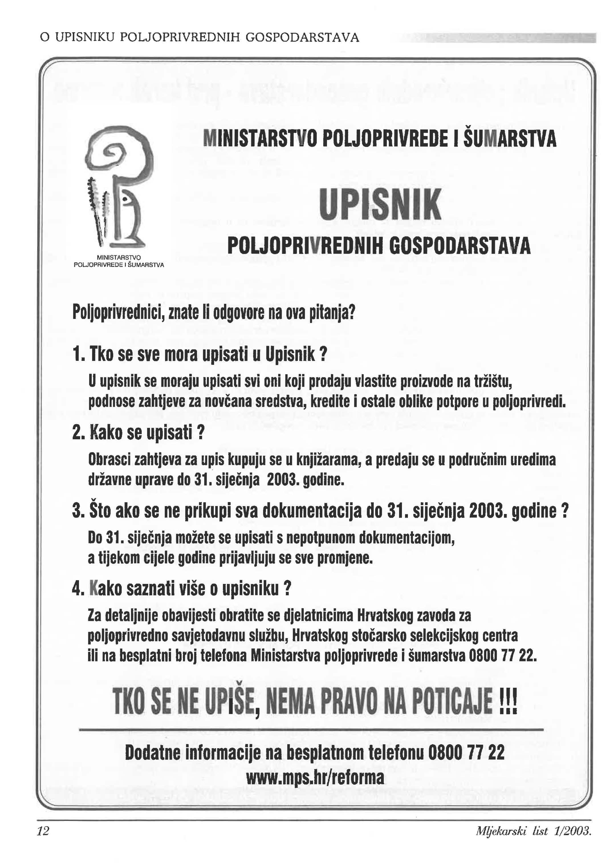Zodetaljnijeobavijestiobratitese djelatnicimaHMJISkogZOYOdo m poljoprivrednasm-jetodamuslužbu,Hnots.liogslotorskoselekcijskogcentra ili nobesplatnibrojtelefonaMinistarstvupoljoprivrede l šumarstvu08007722.