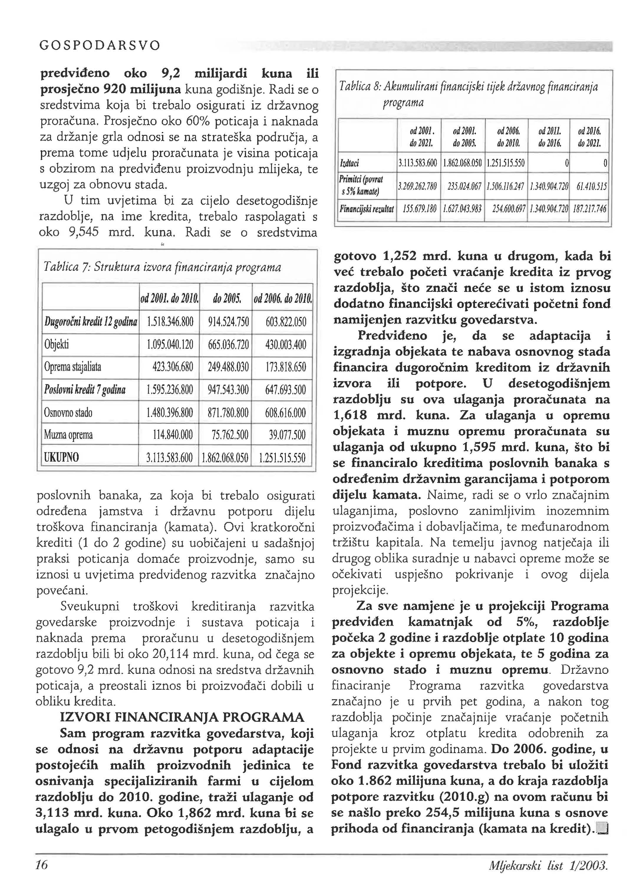 Financijska podloga programa razvitka govedarstva u Htvatskoj _____________________