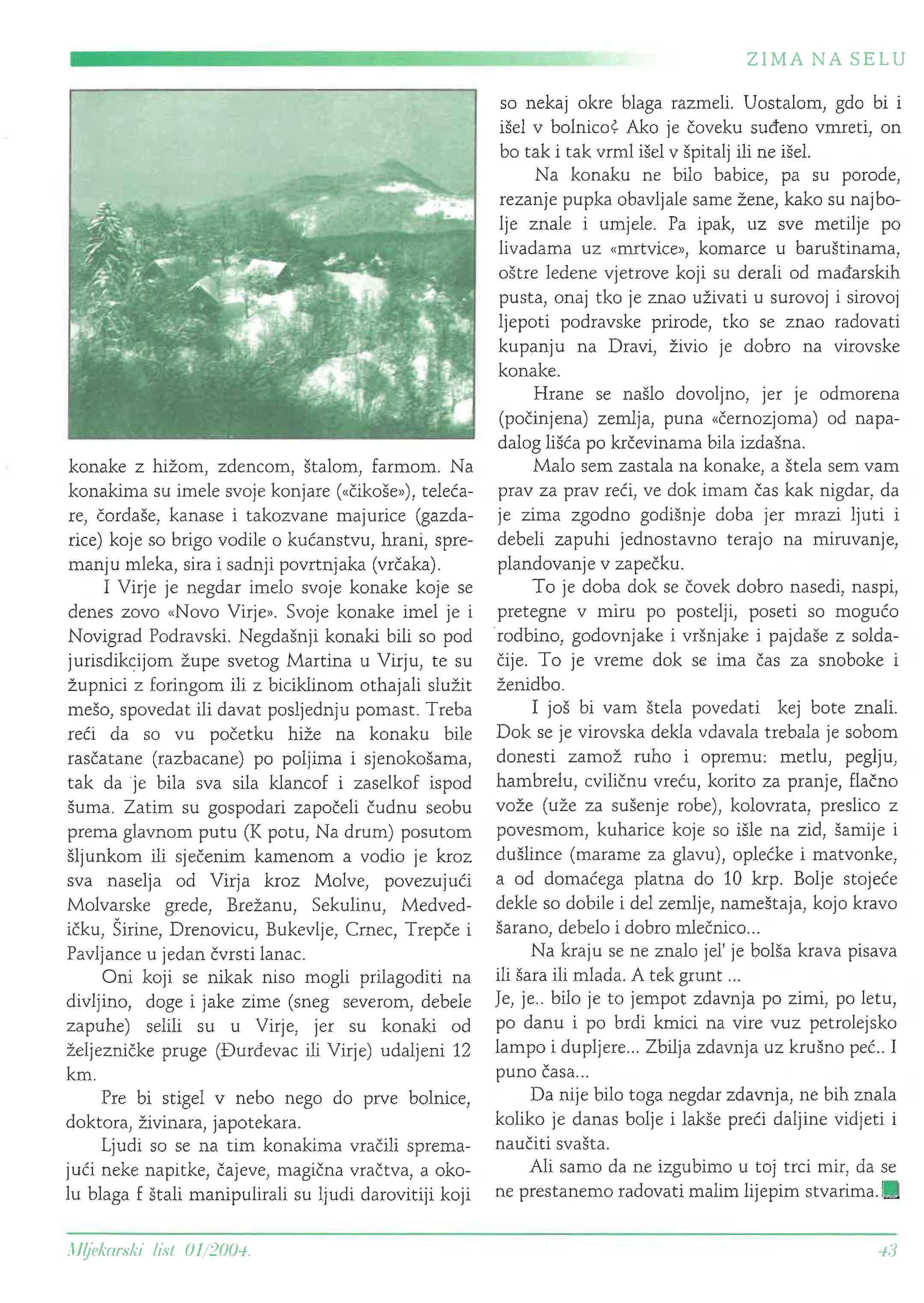 Na konaku ne bilo babice, pa su porode, rezanje pupka obavljale same žene, kako su najbolje znale i umjele. Pa ipak, uz sve metilje po livadama uz «mrtvice», komarce u baruštinama, oštre ledene vjetrove koji su derali od pusta, onaj tko je znao uživati u surovoj i sirovoj ljepoti podravske prirode, tko se znao radovati kupanju na Dravi, živio je dobro na virovske konake.