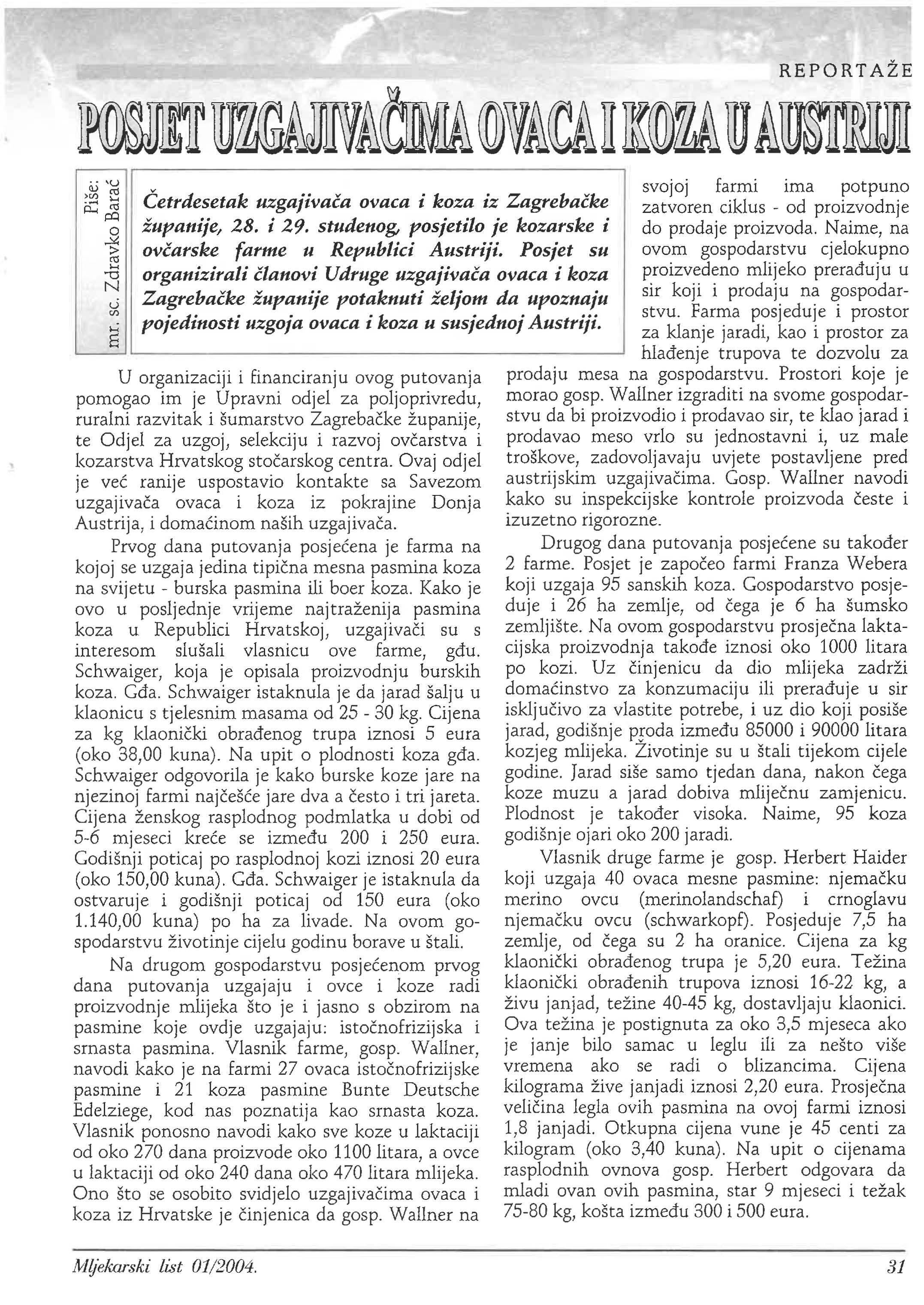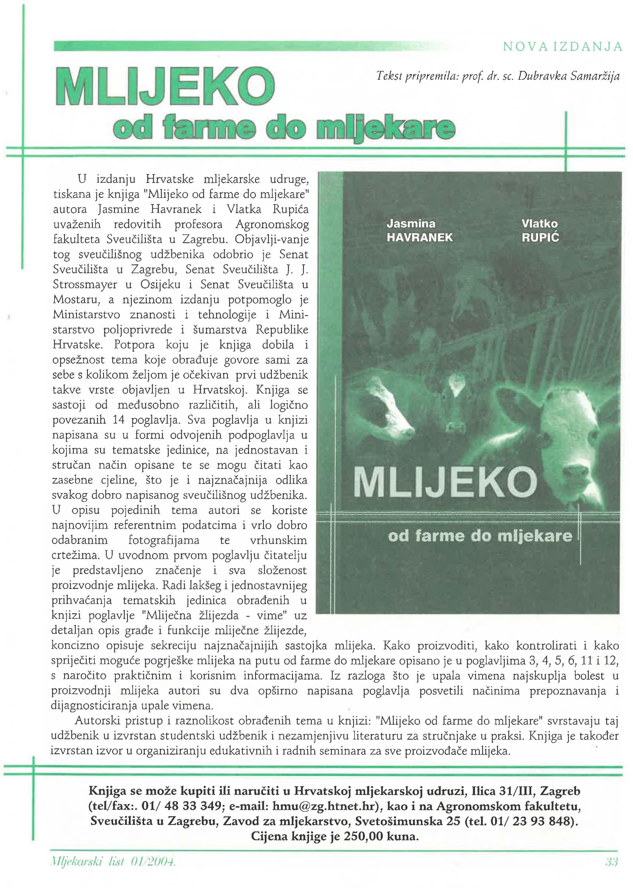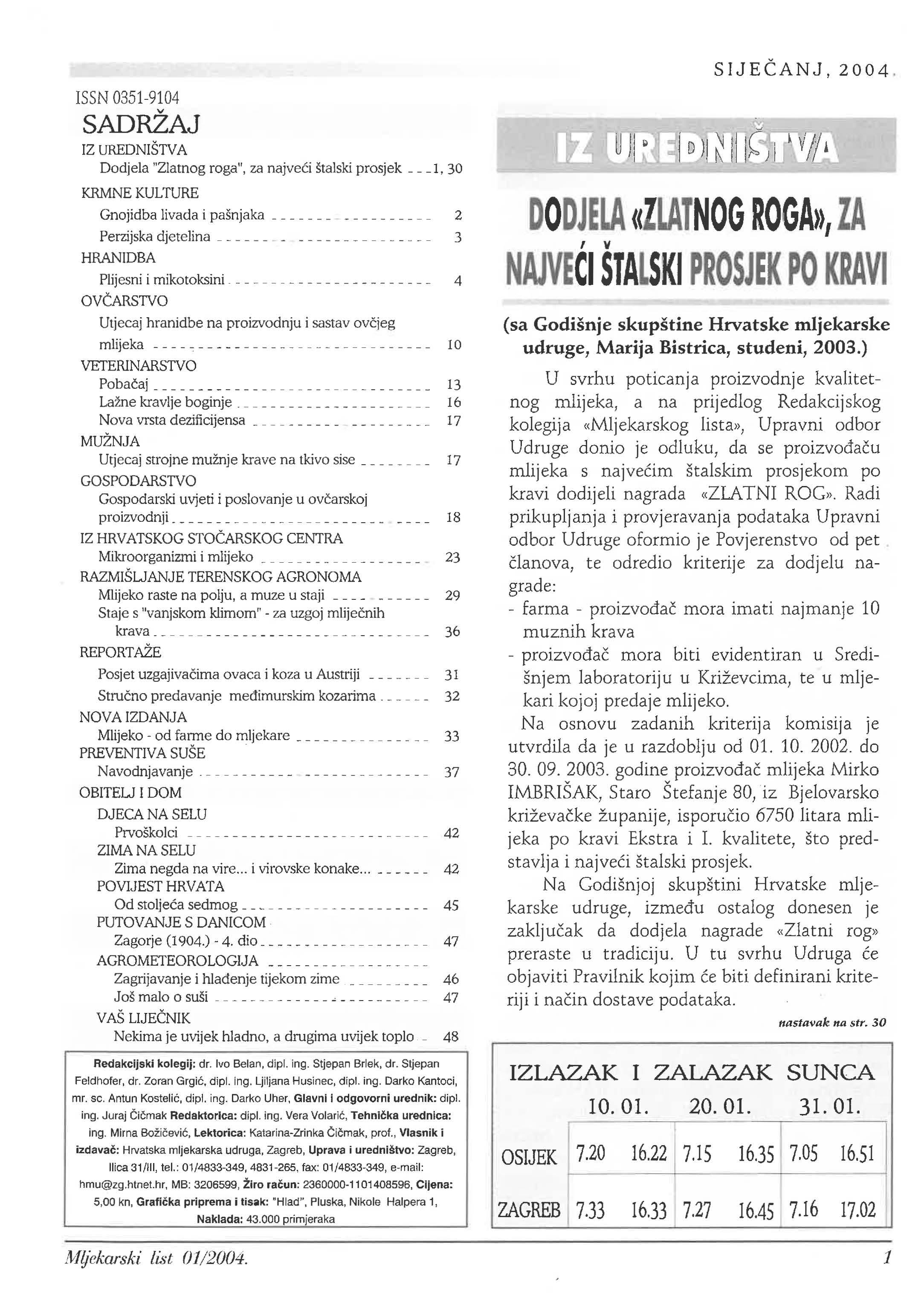 Redakcijski kolegij: dr. Ivo Belan, dipl. ing. Stjepan Brlek, dr. Stjepan Feldhofer, dr. Zoran dipl. ing. Ljiljana Husinec, dipl. ing. Darko Kantoci, mr. se. Antun dipl. ing. Darko Uher, Glavni I odgovorni urednik: dipl. ing. Juraj Redaktorlca: dipl. ing. Vera urednica: ing. Mirna Lektorica: Katarina-Zrinka prof., Vlasnik i Hrvatska mljekarska udruga, Zagreb, Uprava i urednil!ttvo: Zagreb, llica31/III, tel.: 01/4833-349, 4831-265, fax: 01/4833-349, e-mail: hmu@zg.htnet.hr, MB: 3206599, Žiro 2360000-1101408596, Cijena: 5,00 kn, priprema i tisak: "Hlad", Pluska, Nikole Halpera 1, Naklada: 43.000 primjeraka