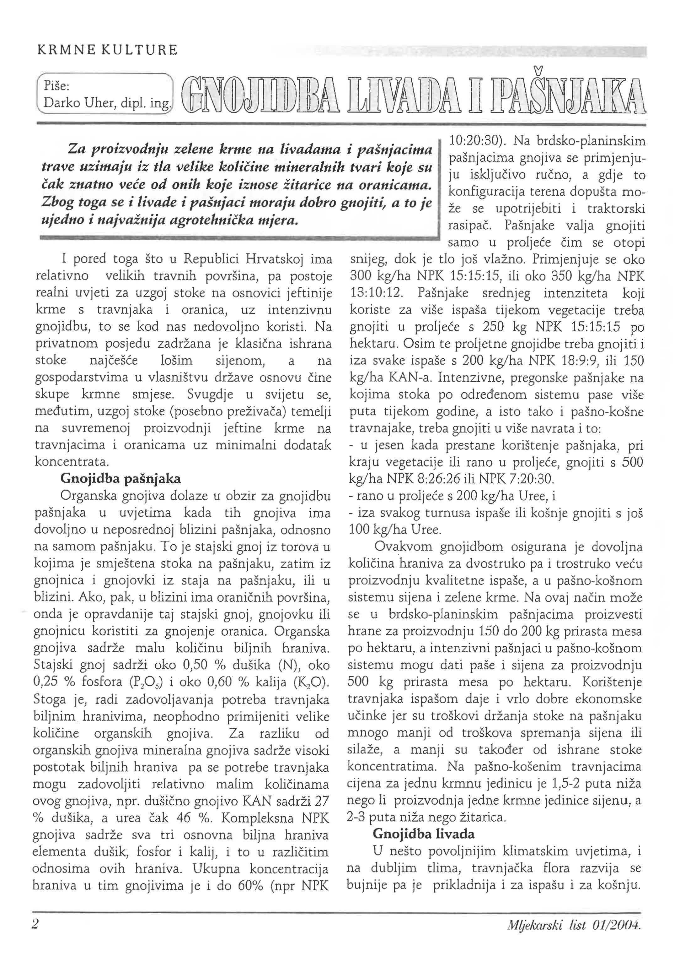 Primjer gnojidbe djetelinsko travne smjese: - rano u prije kretanja vegetacije 700 kg NPK 7:20:30 po hektaru, - iza prvog, drugog i otkosa po 150 kg uree po hektaru, a iza i petog otkosa po 150 kg/ha KAN-a 27 %. :.J