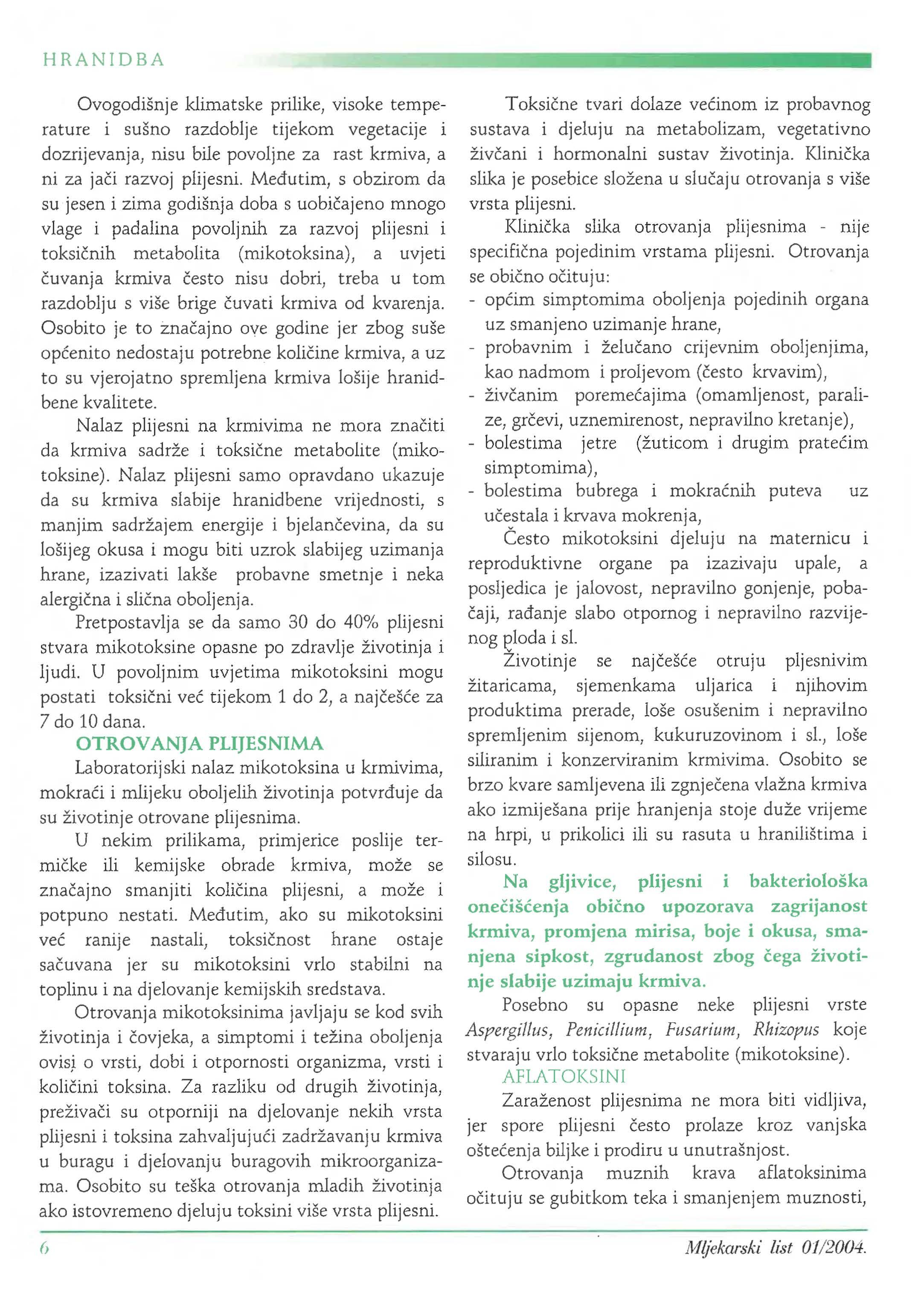 Ovogodišnje klimatske prilike, visoke temperature i sušno razdoblje tijekom vegetacije i dozrijevanja, nisu bile povoljne za rast krmiva, a ni za razvoj plijesni. s obzirom da su jesen i zima godišnja doba s mnogo vlage i padalina povoljnih za razvoj plijesni i metabolita (mikotoksina), a uv1et1 krmiva nisu dobri, treba u tom razdoblju s više brige krmiva od kvarenja. Osobito je to ove godine jer zbog suše nedostaju potrebne krmiva, a uz to su vjerojatno spremljena krmiva lošije hranidbene kvalitete.