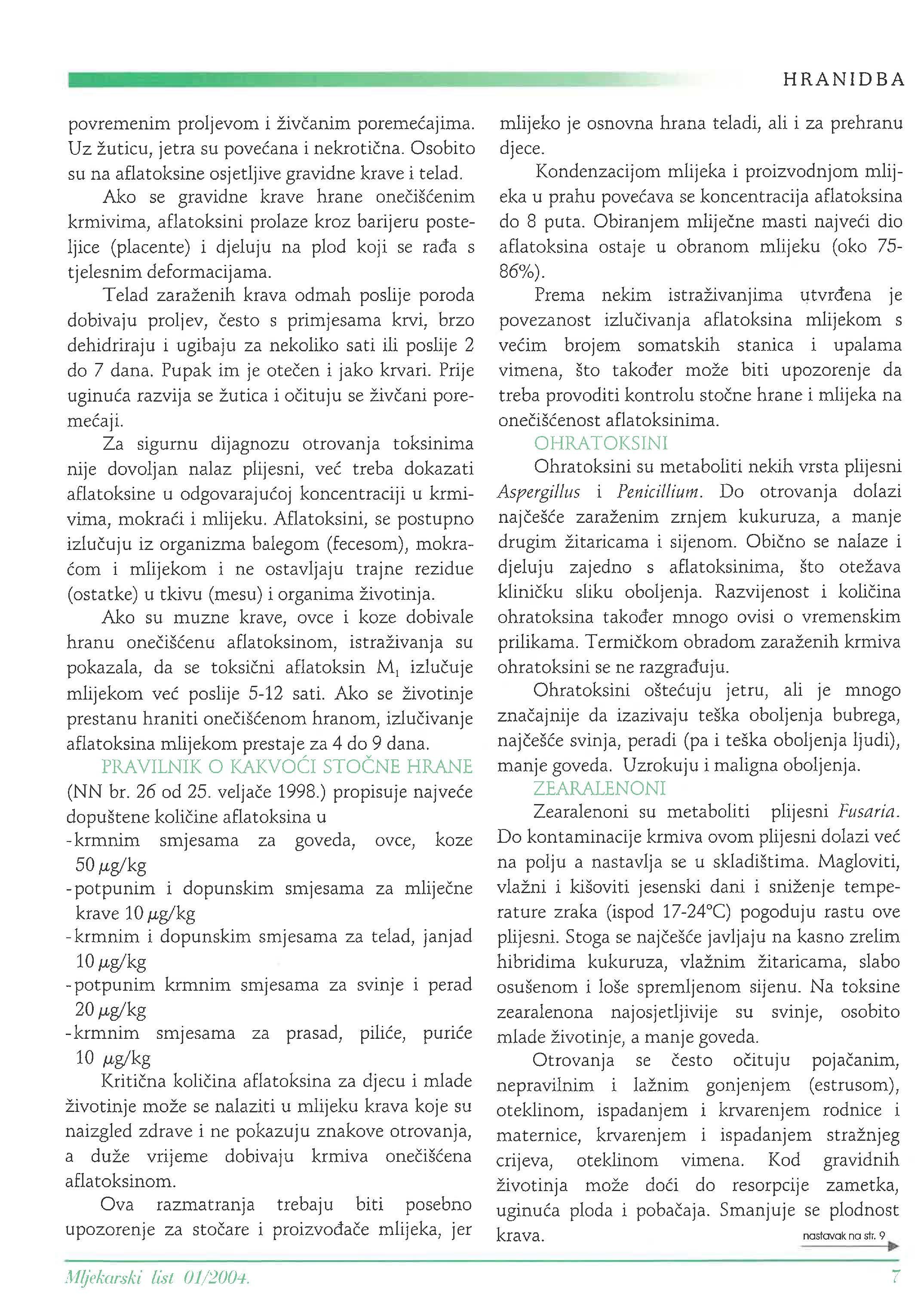 Laboratorijski nalaz mikotoksina u krmivima, i mlijeku oboljelih životinja da su životinje otrovane plijesnima.