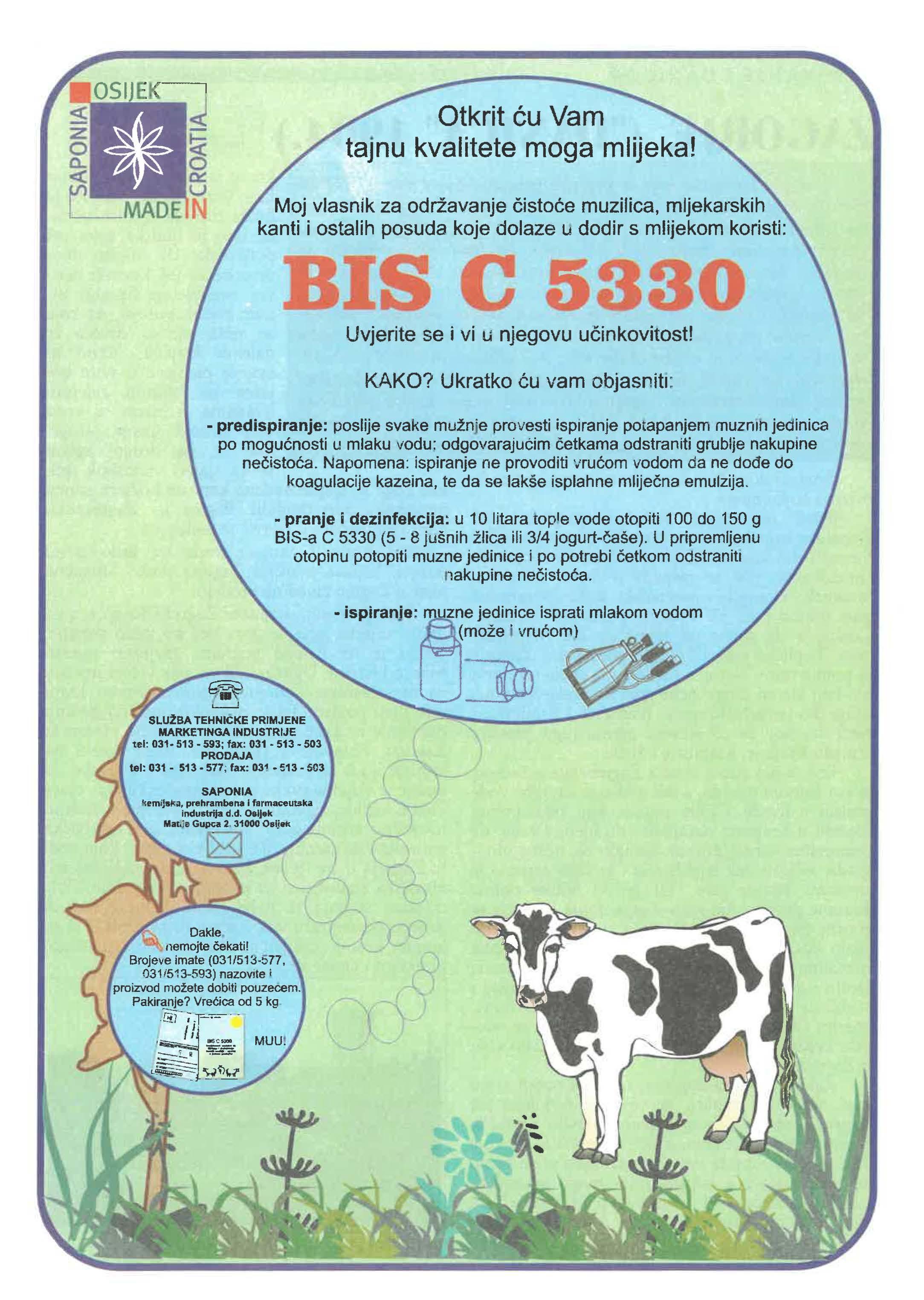 BIS-a C 5330 (5 - 8 jušnih žlica ili 3/4 U pripremljenu otopinu potopiti muzne jedinice i po potrebi odstraniti nakupine